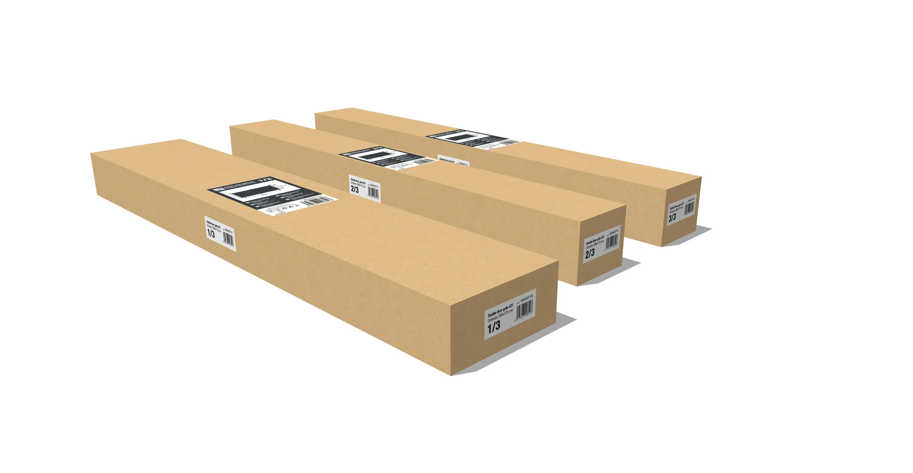 - Rozmery balenia (D x Š x V) – 3. krabica: 168 x 20 x 19 cm