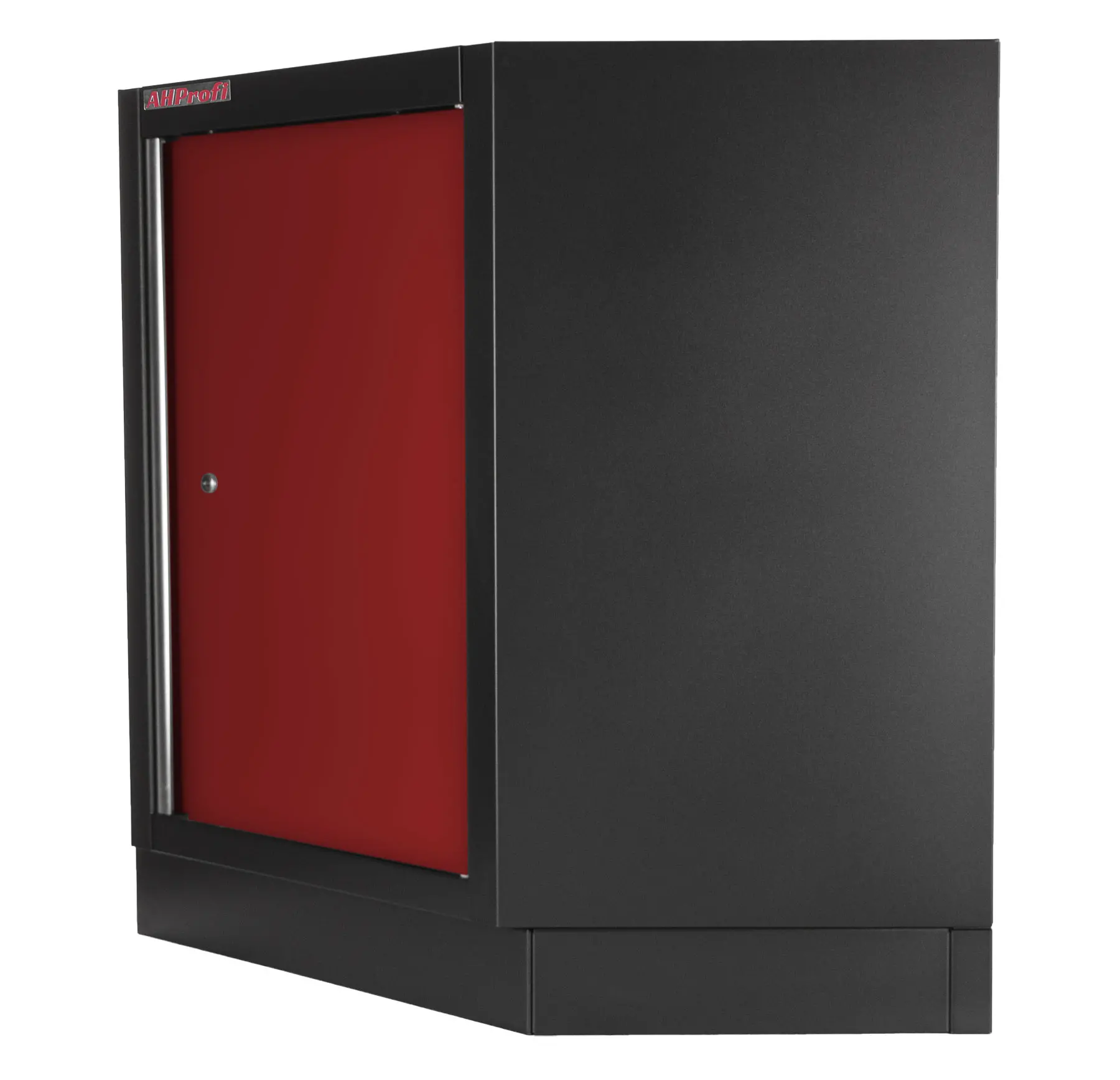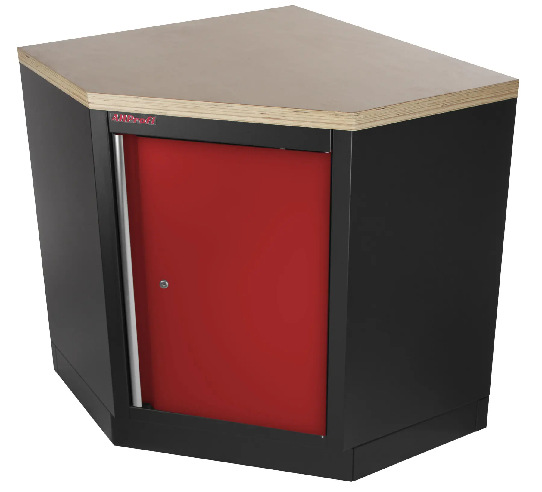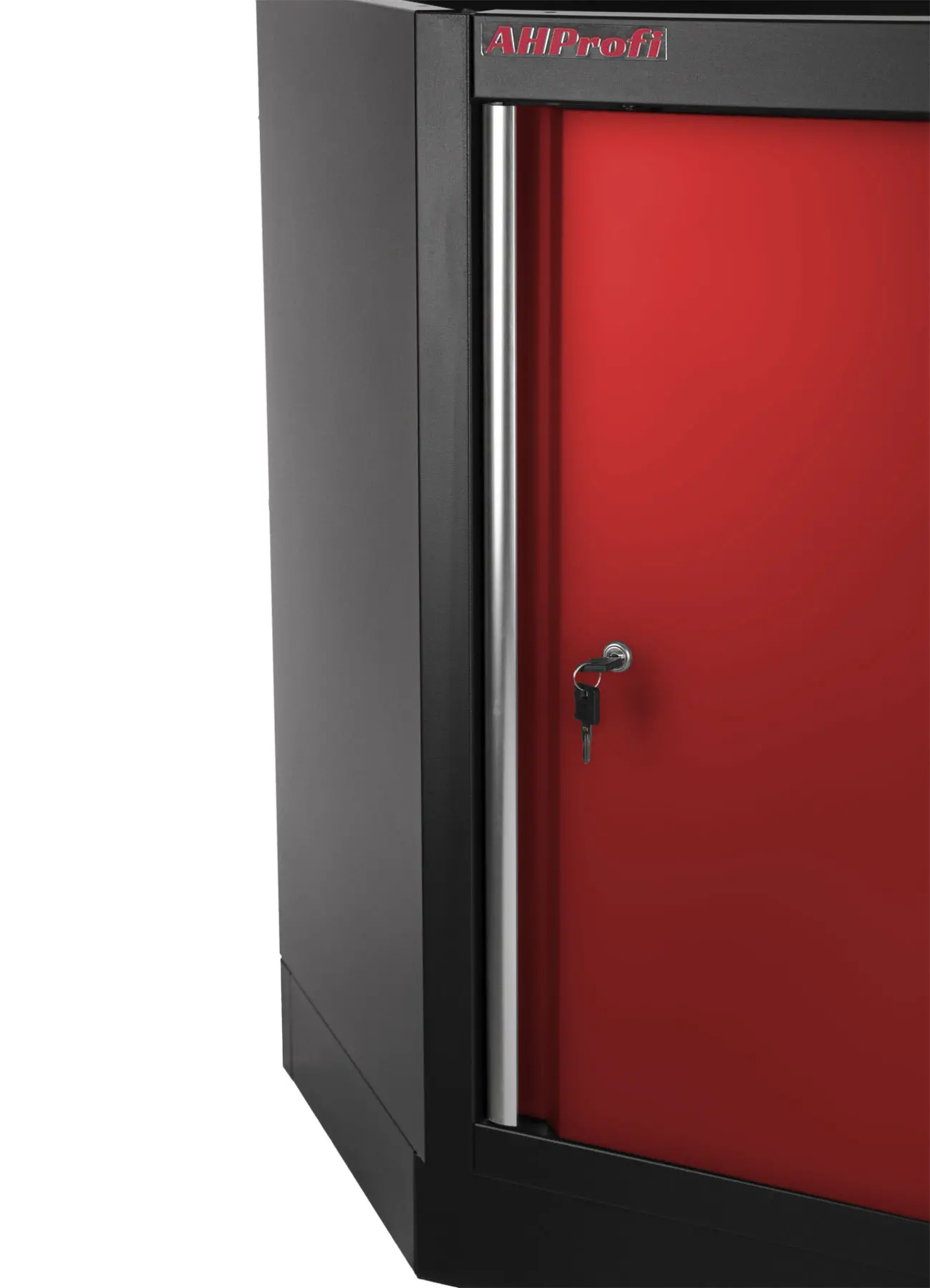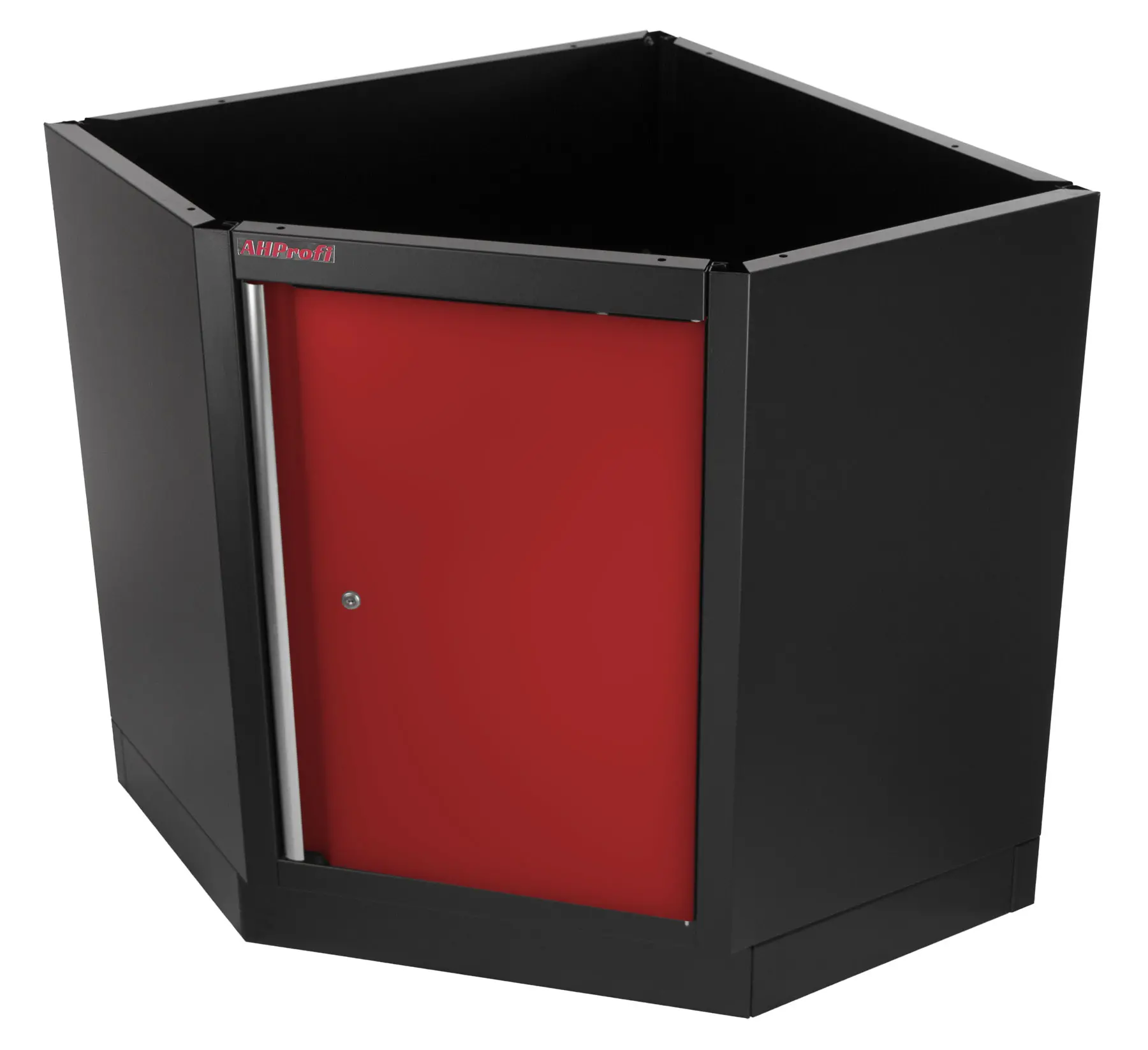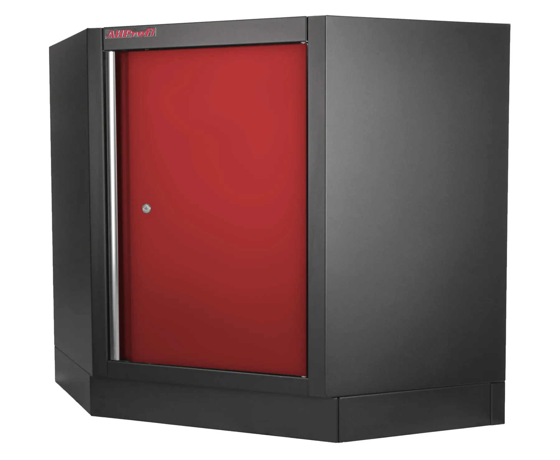 Celokovová rohová PROFI RED dielenská jednokrídlová skrinka. Skrinka je vhodná do profesionálnych servisov, dielní, ale aj do garáží na uskladnenie širokého sortimentu tovaru i ručného náradia, na ktoré sa potom nepráši a ľahšie sa udrží prehľadne upratané na správnom mieste. Táto skrinka a prípadne celá rohová zostava Vám dáva možnosť maximálne využiť priestor v garáži, domácej dielni aj profi dielni a navyše parádne vyzerá.