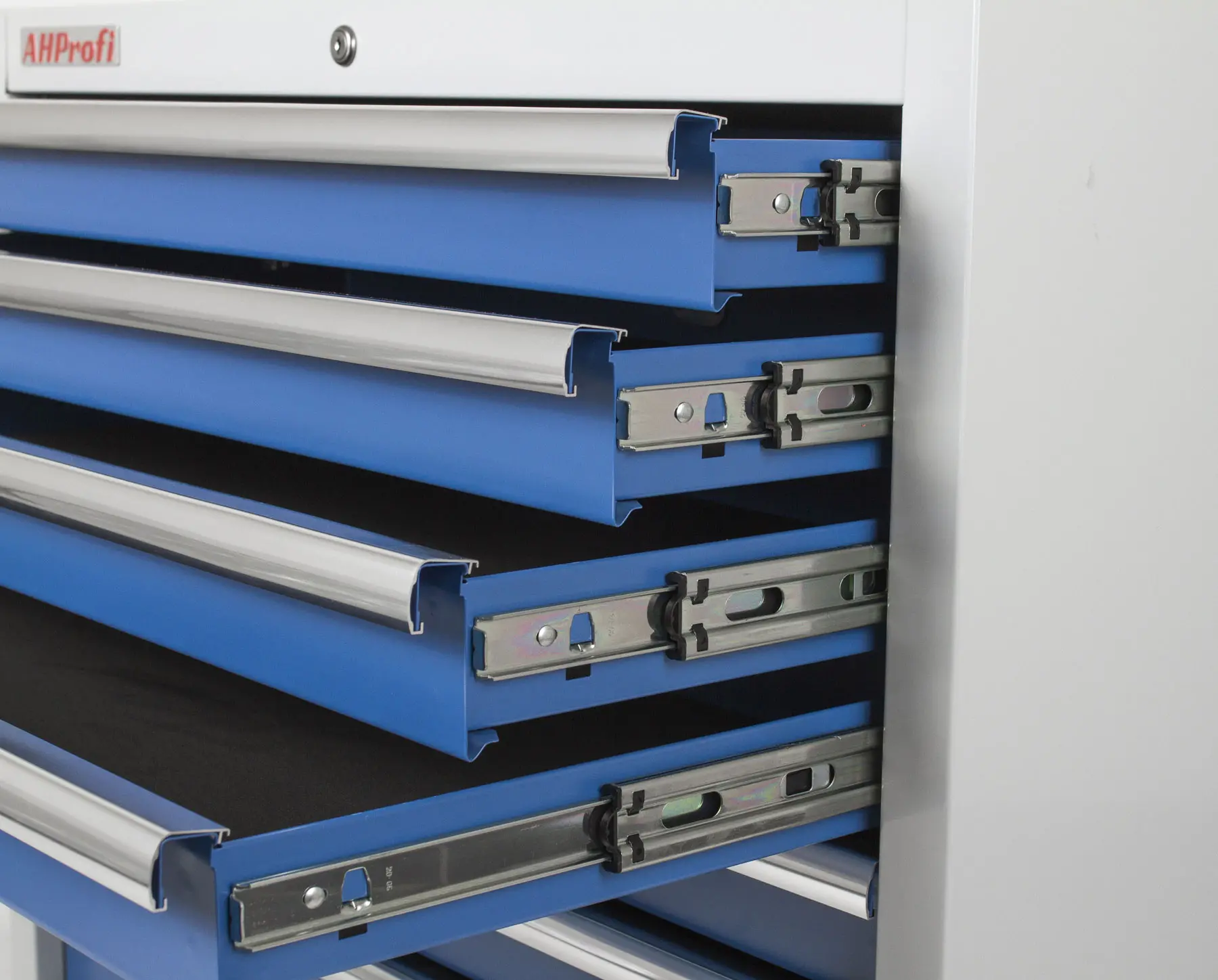 Súčasťou vozíka je 7 uzamykateľných zásuviek pre uloženie výplňou dielenského vozíka s ručným náradím. Zásuvky sú osadené guličkovými ložiskami v jazdcoch, čím sa zvyšuje ich nosnosť bez vplyvu na výbornú vlastnosť vychádzaní / státia.