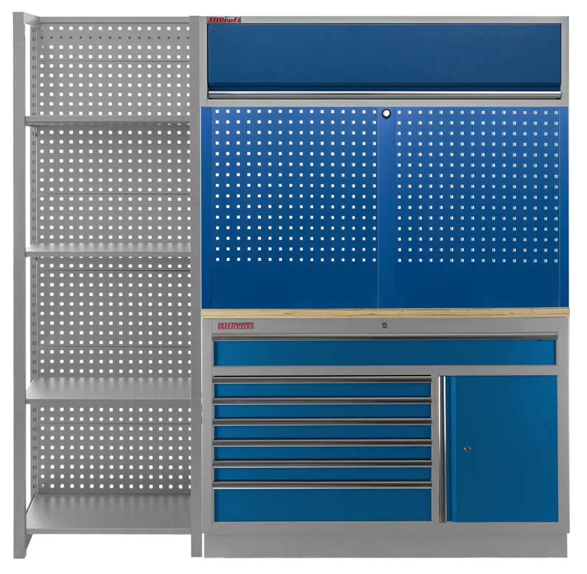 Zostava 9 ks dielenského nábytku PROFI BLUE s drevenou pracovnou doskou