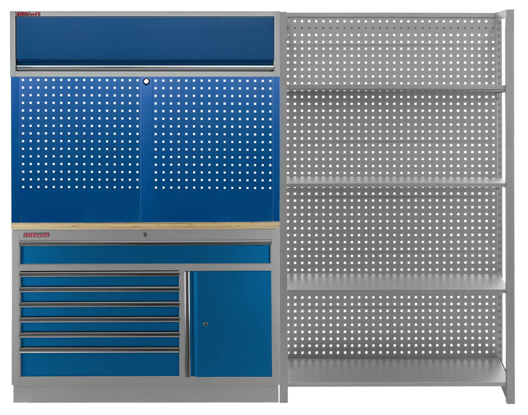 Zostava nábytku v sebe skrýva dostatočné množstvo úložného priestoru pre vaše náradie, autotechniku aj dielenské vybavenie. V kombinácii s robustnou pracovnou doskou získate multifunkčnú stenu, s ktorou vám práca pôjde od ruky vo všetkých smeroch.