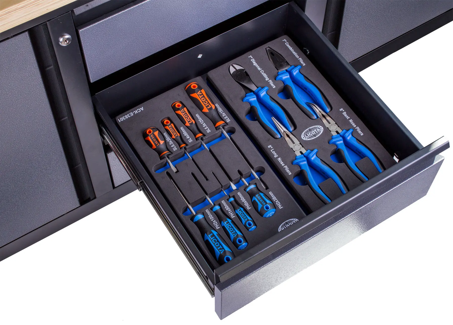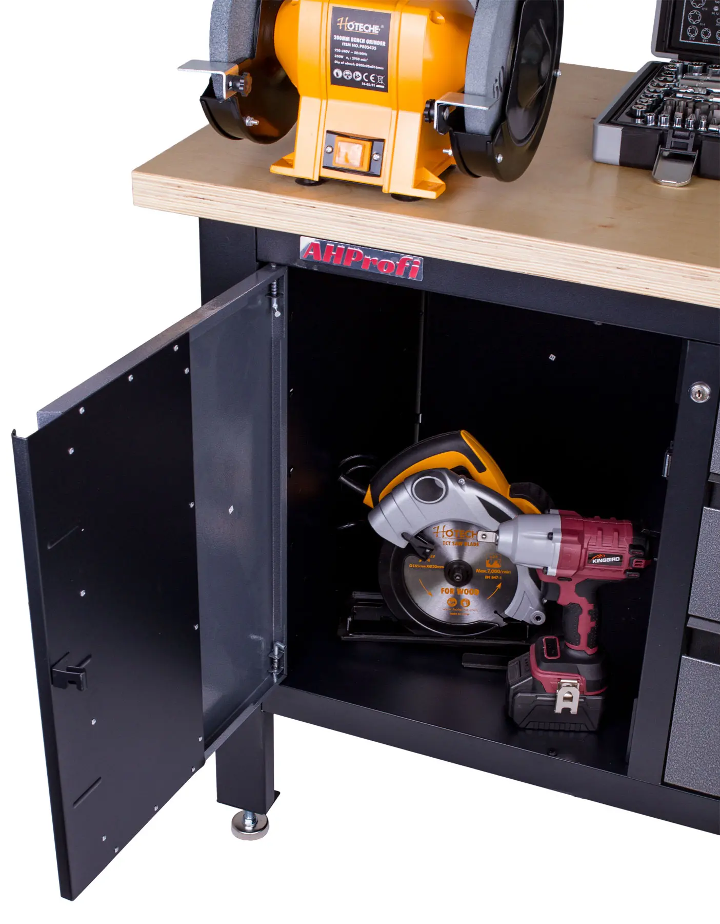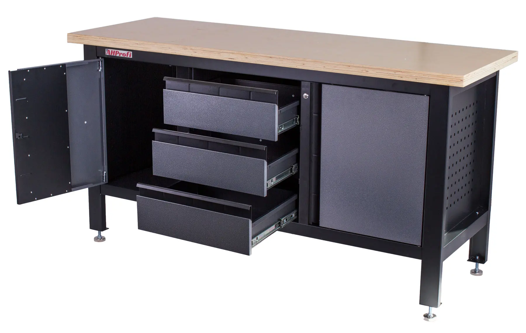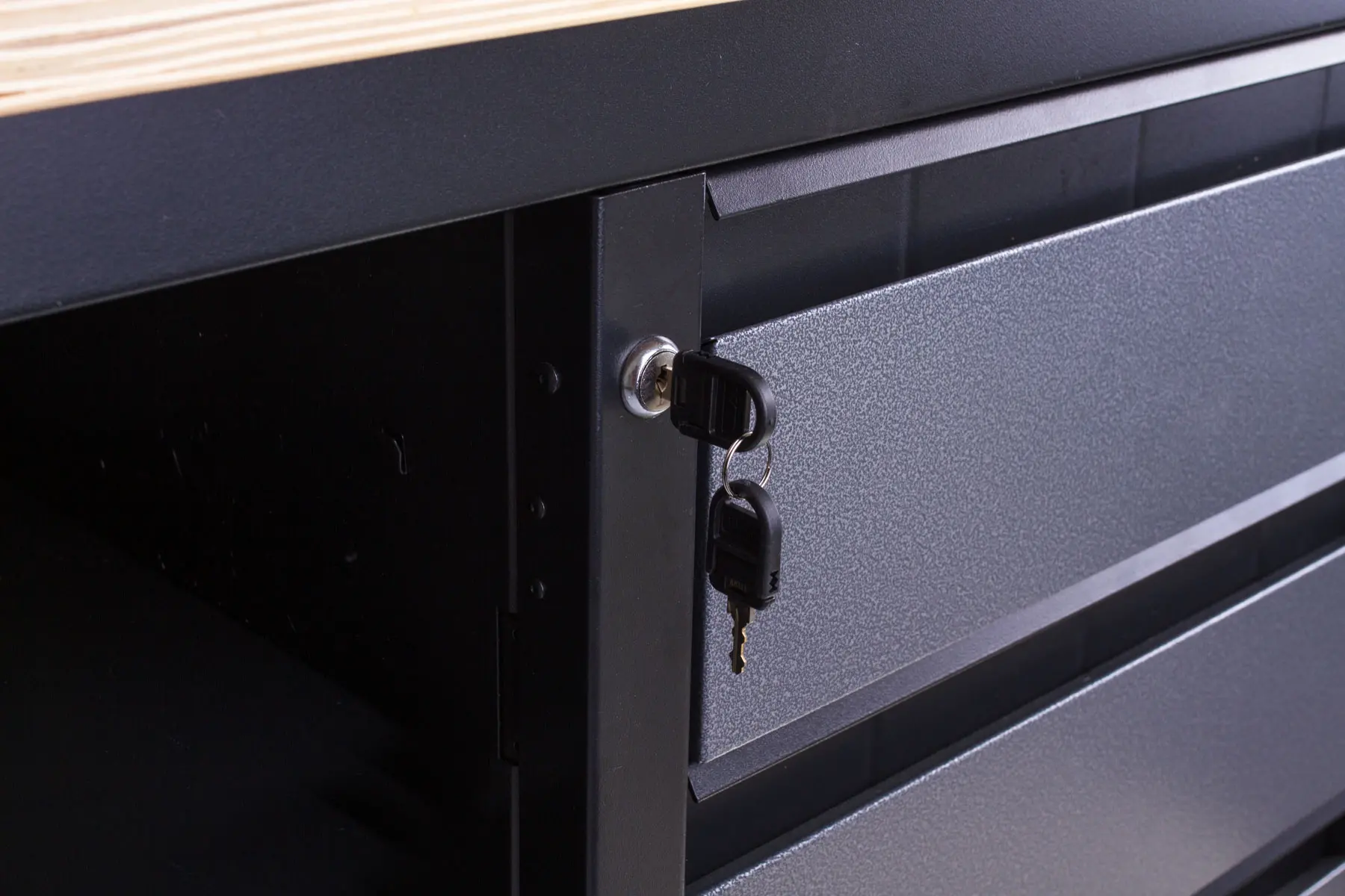 Vďaka uzamykateľným zásuvkám a skriňkám nemusíte mať strach pred nepozvanými hosťami a uložené náradie zostane v bezpečí.