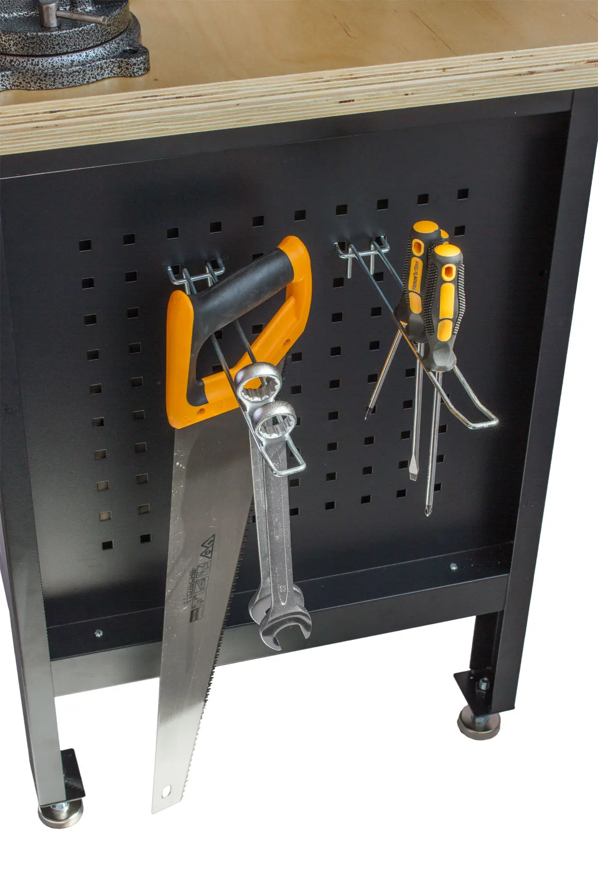 K dierovanej doske môžete prikúpiť rôzne druhy háčikov a náradie si na bočnú stenu jednoducho zavesíte.