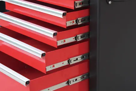 Vozík obsahuje 10 zásuvok s kvalitnými guličkovými pojazdami.