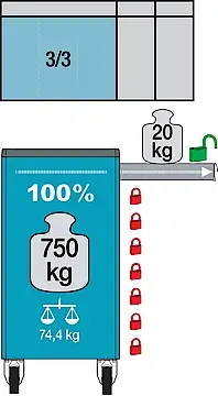 • 7 zásuviek: 5 nízkych, 2 vysoké, s nosnosťou 20 kg pre vysoké zásuvky.