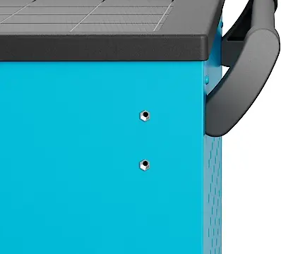 • Centrálne zamykanie cez cylindrický zámok s 2 kľúčmi a vzájomné zabezpečenie zásuviek na minimalizáciu rizika preklopenia.