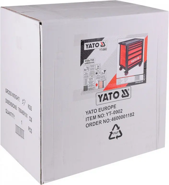 Dielenská skrinka značky YATO, vybavená 6 zásuvkami s guličkovými ložiskami s centrálnym zamykaním.
