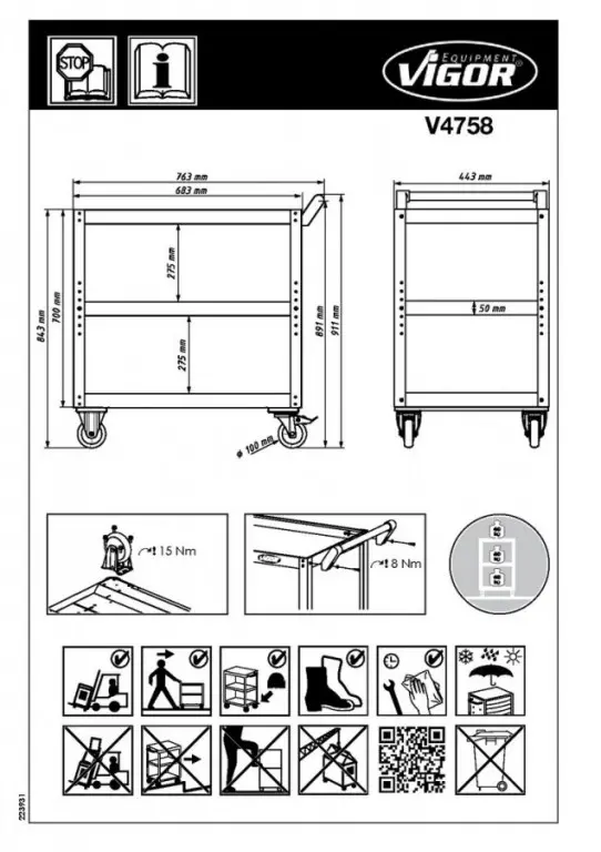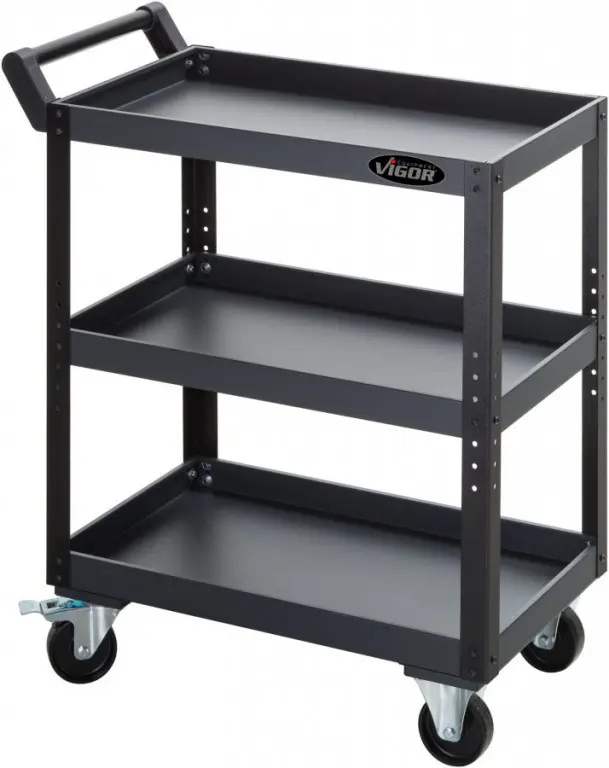 Dielenský (servisný) vozík na náradí VIGOR. Stabilná konštrukcia z oceľového plechu (50 mm hrúbka).