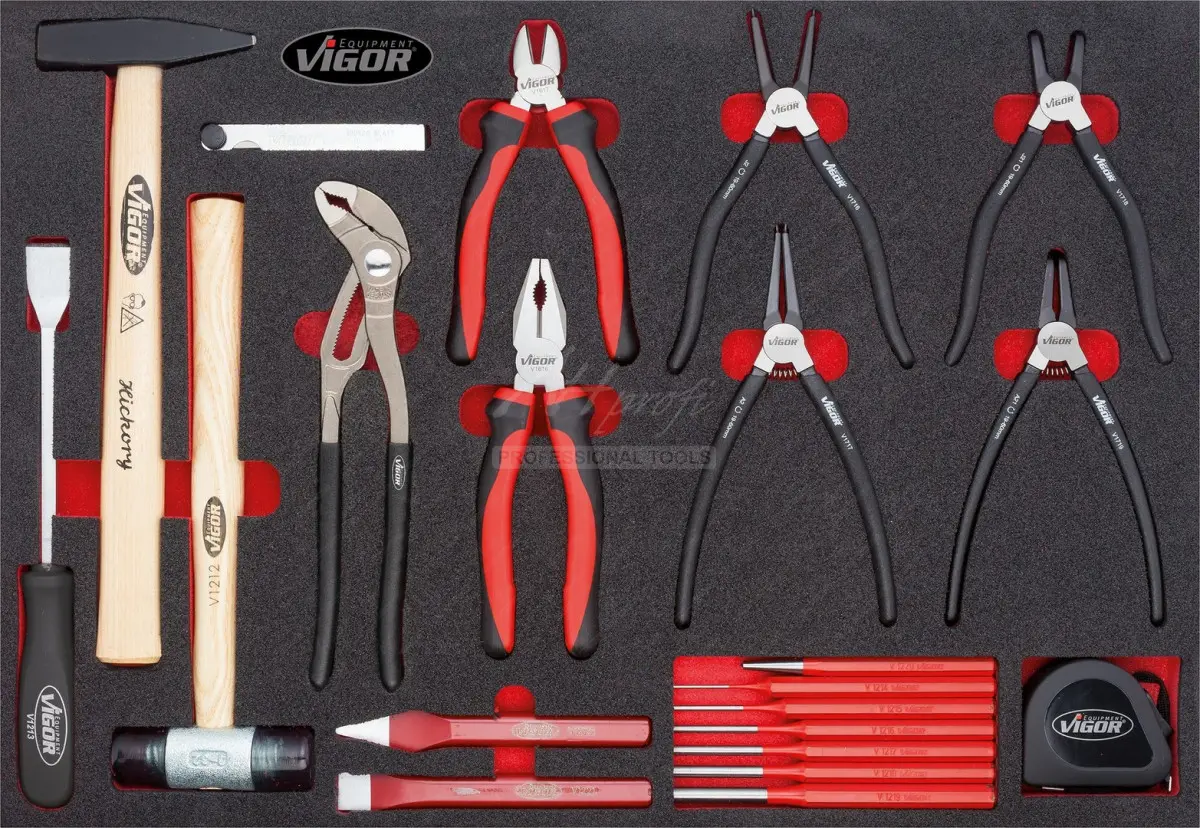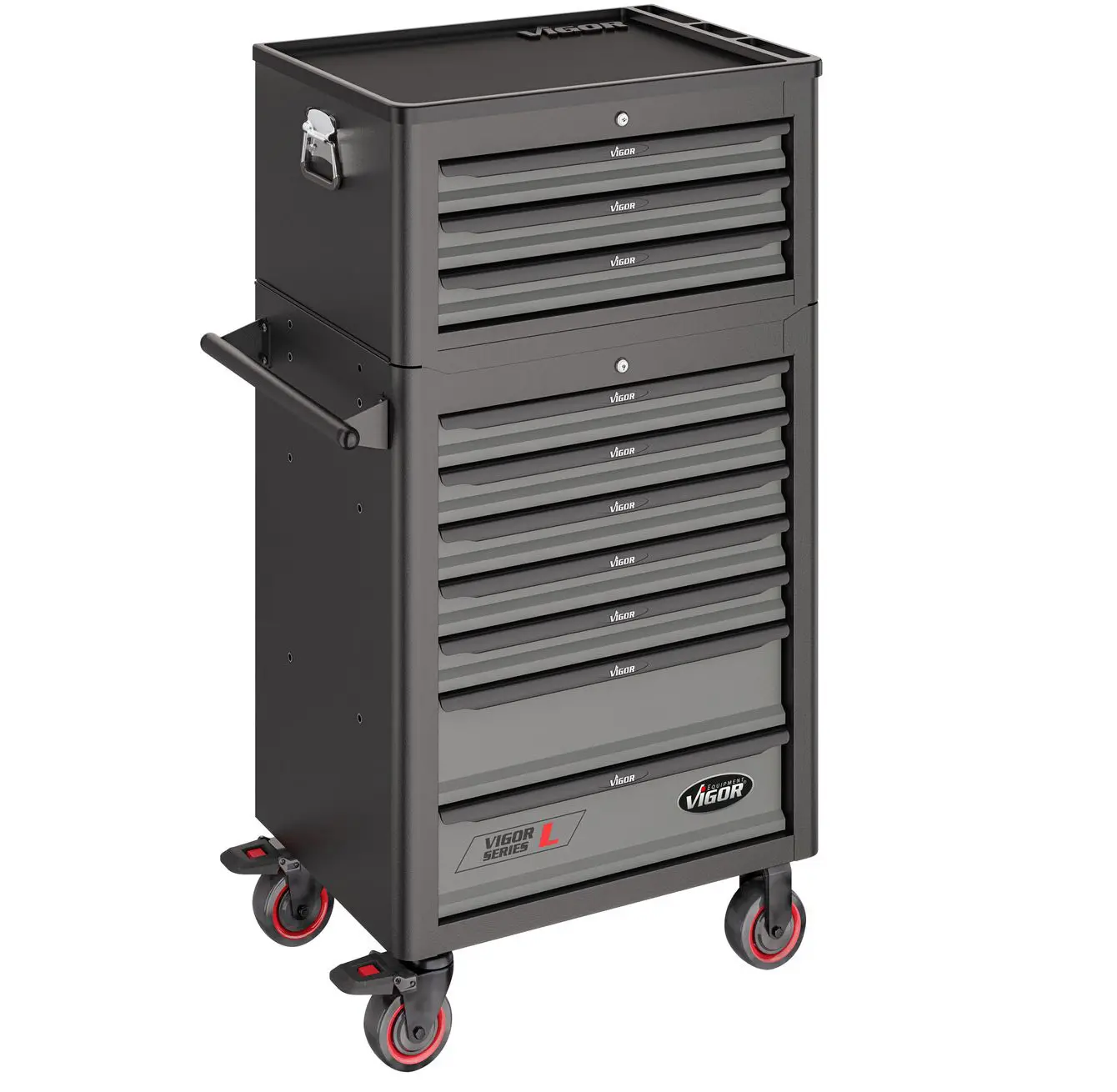 Profesionálny dielenský vozík od nemeckej značky VIGOR,vybavený celkom 344 kusmi náradia v penový...