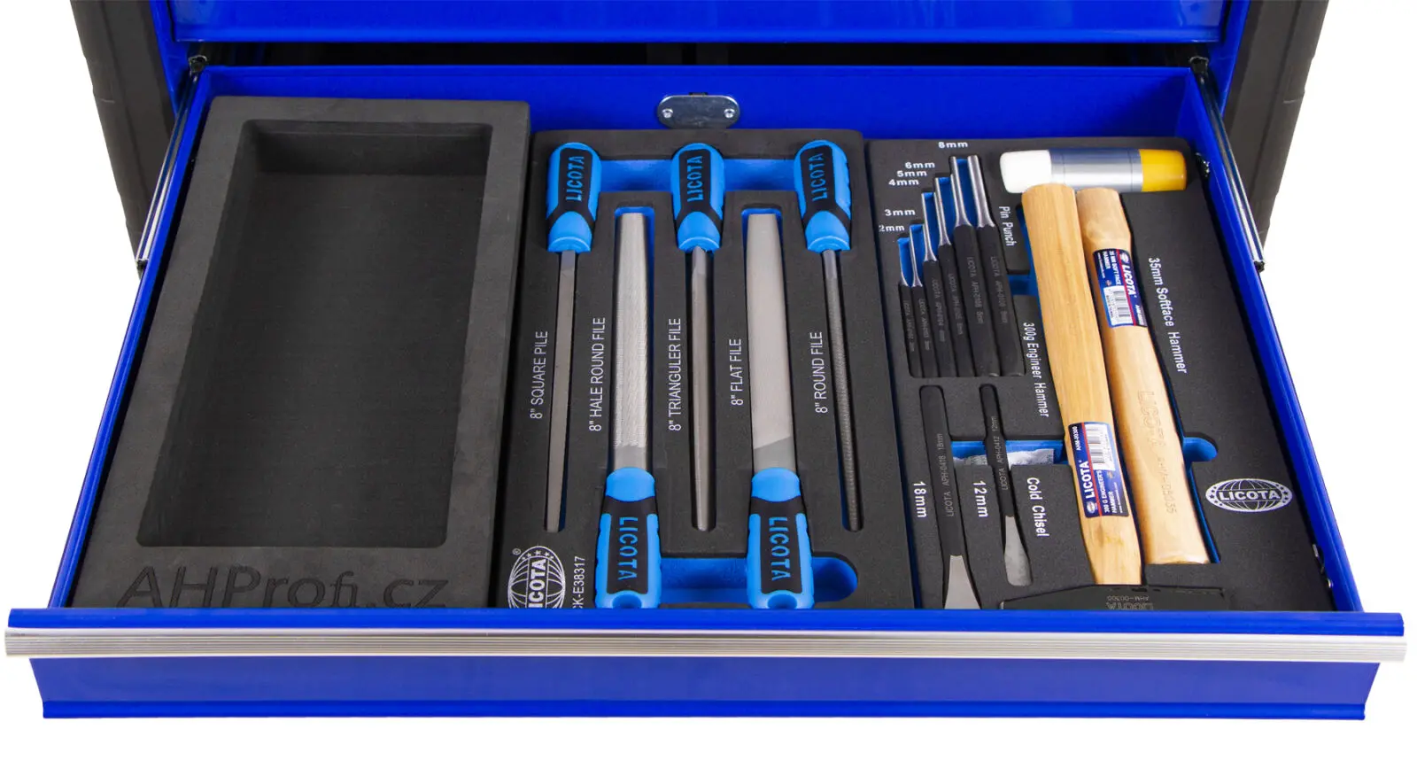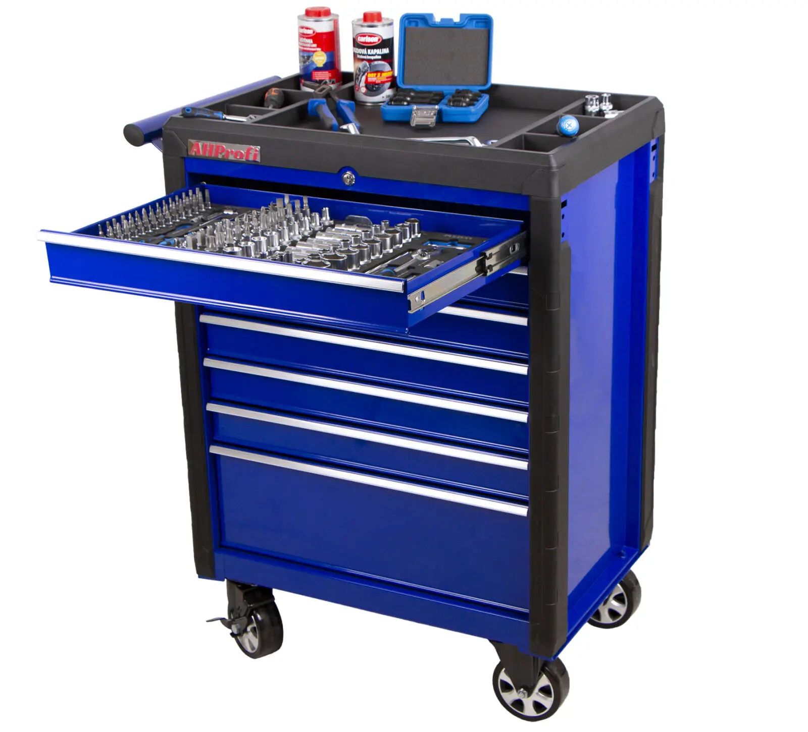 Vozík obsahuje 10 penových výplní s PROFI náradím určeným pre najnáročnejšie použitie.