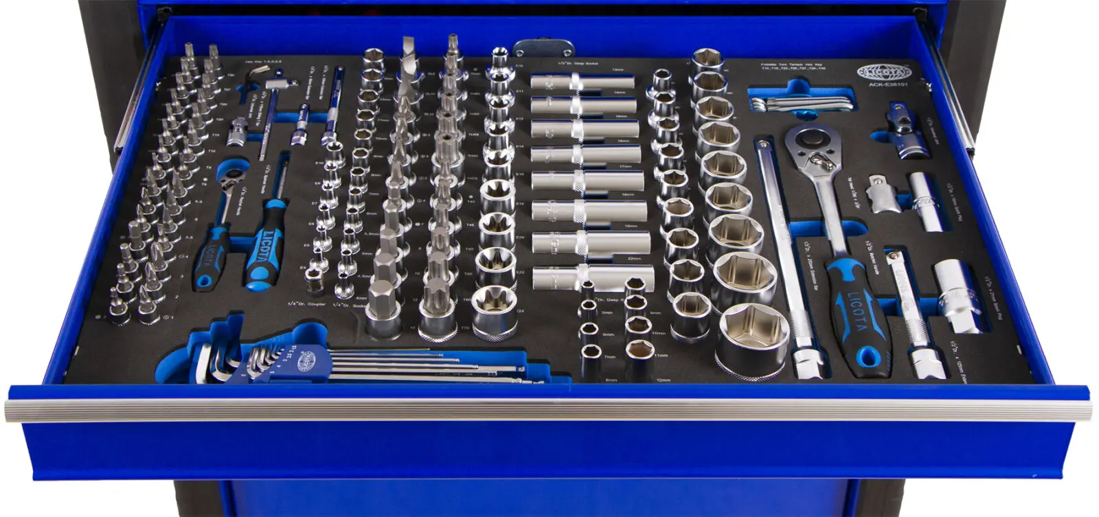 | 18 ks | Nástrčné kľúče: 8, 10, 11, 12, 13, 14, 15, 16, 17, 18, 19, 21, 22, 23, 24, 27, 30, 32 mm |