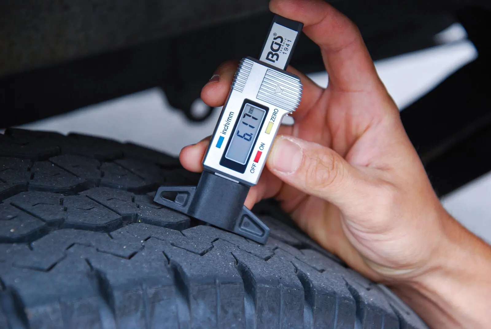 Digitálny hĺbkomer vzorky pneumatík s rozsahom merania 0 - 28 mm.