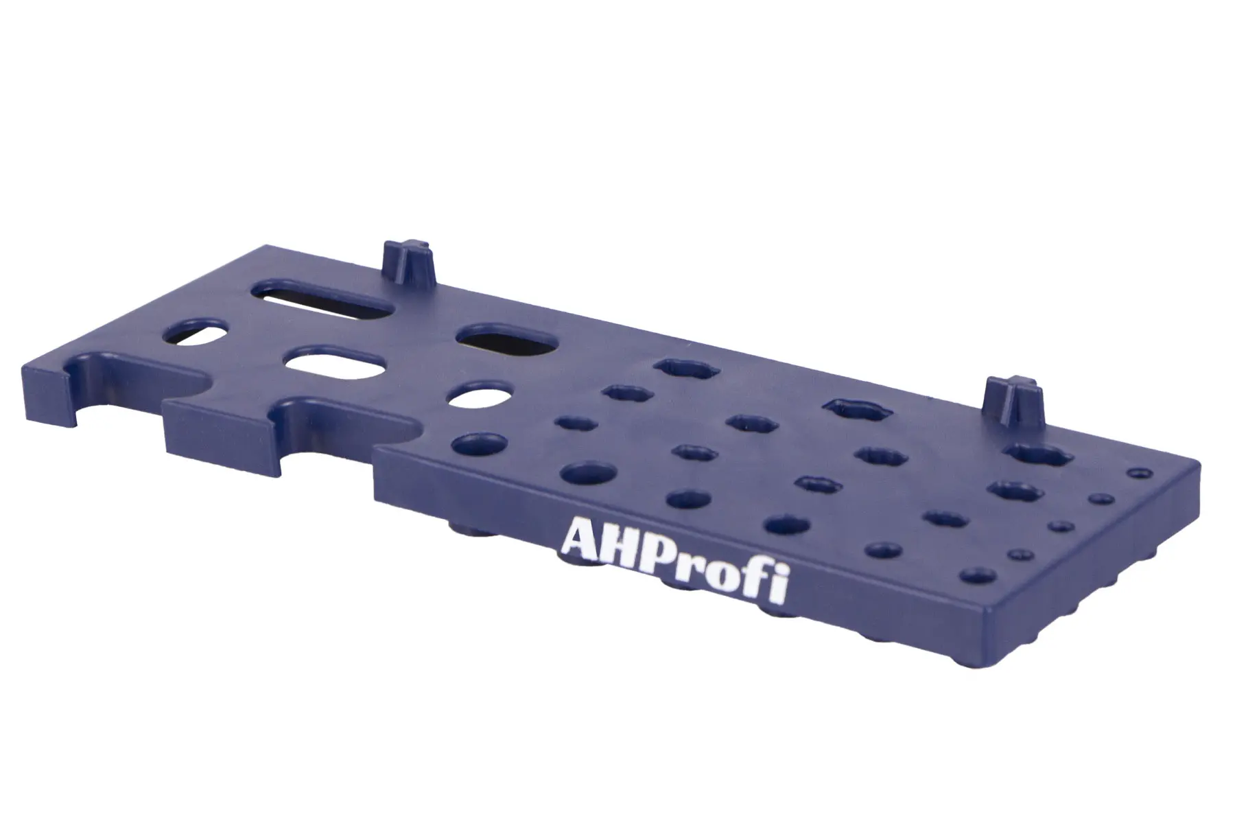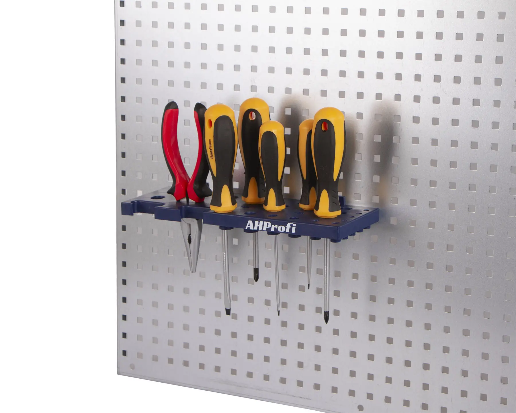 Držiak náradia je určený pre dierované dosky s roztečí 18 x 18 mm.  Držiak náradia je veľmi praktický. Náradie budete mať vždy prehľadne vyskladané a po ruke.