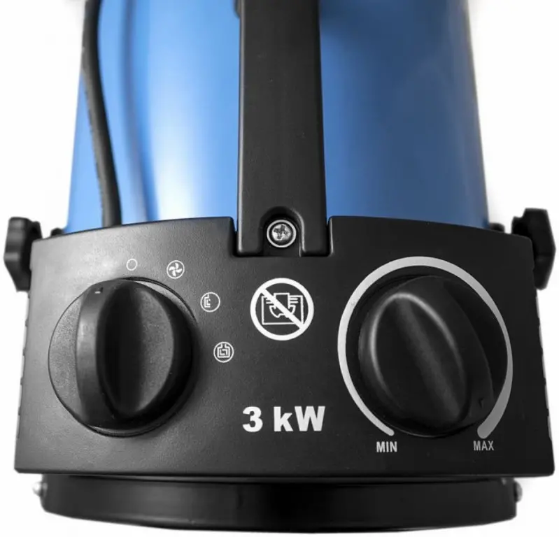 2 topné stupne. Prietok vzduchu: 280 m3/hod. Max. vykurovací výkon: 3 kW. Menovitý prúd: 8,7 A.