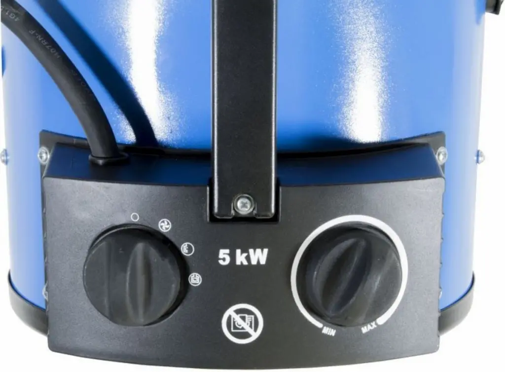 Max. tepelný výkon: 5 kW (4.300 kcal/hod, 2 topné stupně: 2,5 kW/5 kW), ventilátor.