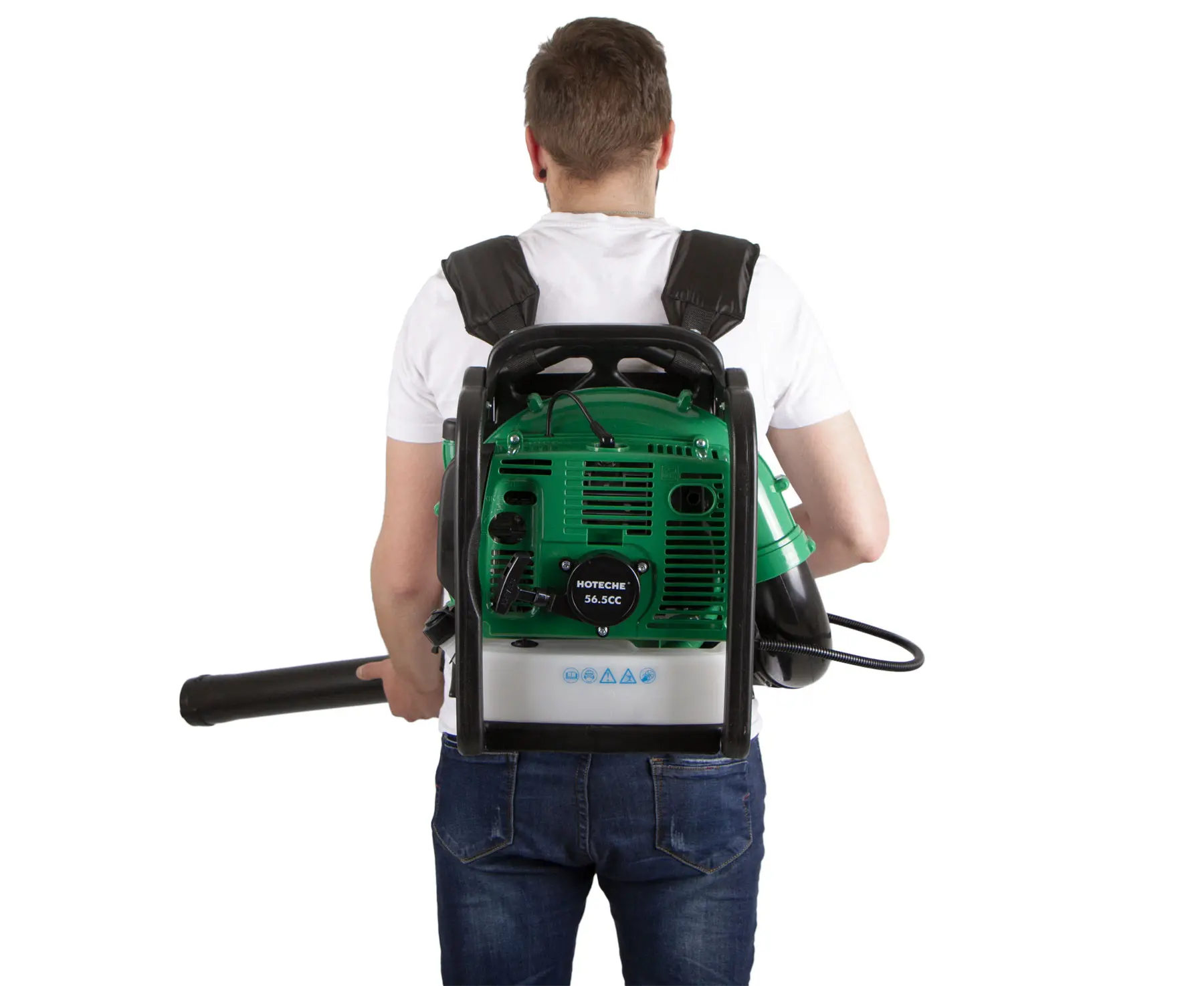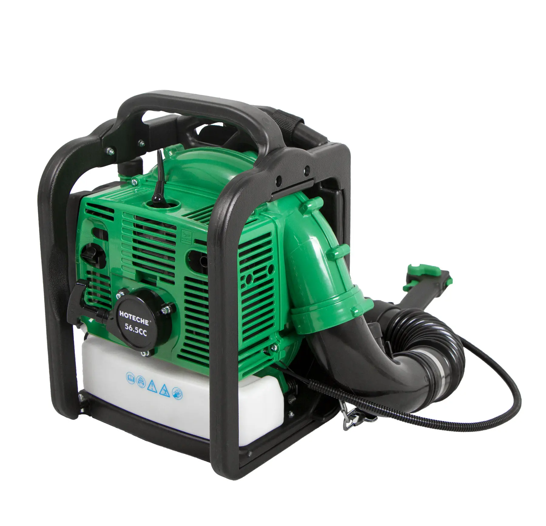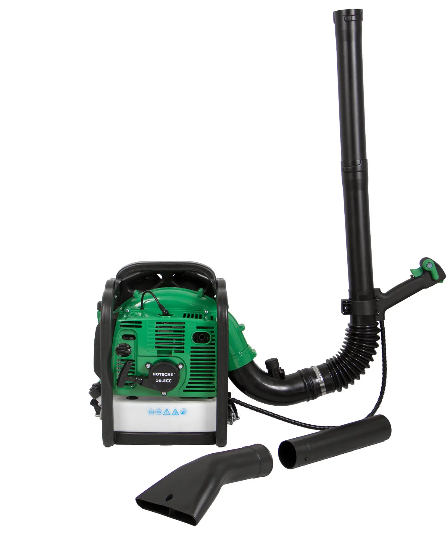 Benzínový fukar na lístie od značky Hoteche poháňaný dvojtaktným motorom s objemom 56,5 cm3.