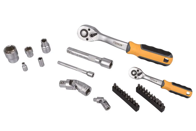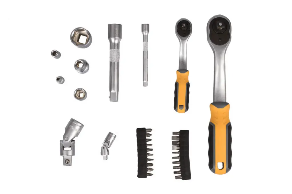 Račne 1/2" a 1/4", 10 kľúčov 1/2" 10-24mm, 13 kľúčov 1/4" 4-14 mm, bity 1/4" torx, PH, PZ, ploché...