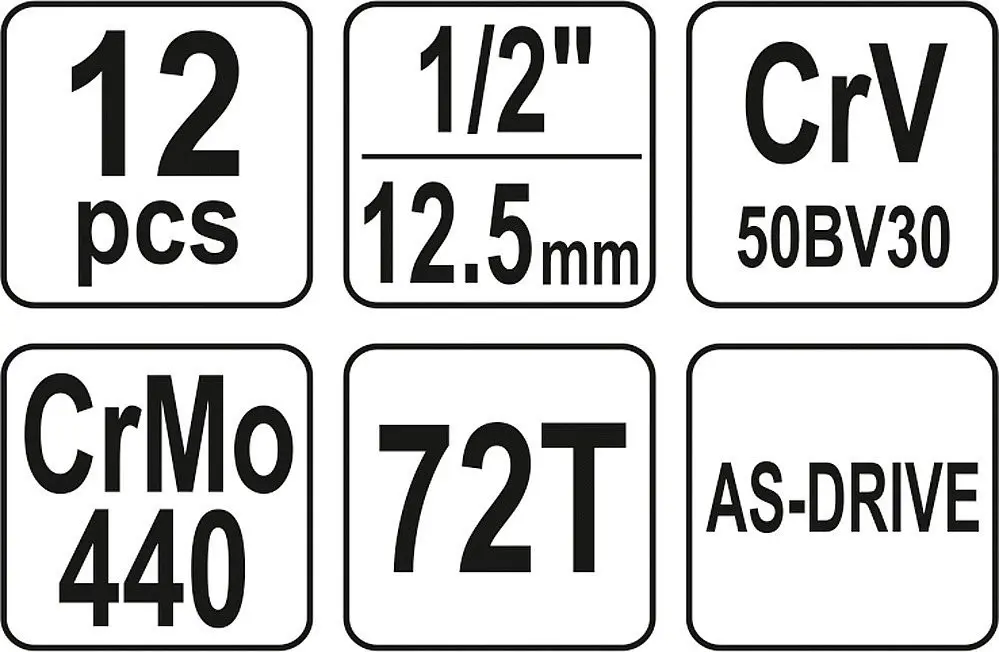 Gola sada 1/2 "od značky YATO, obsahuje 12 kusov - 10 nástrčných kľúčov 10-24 mm, predlžovací ada...