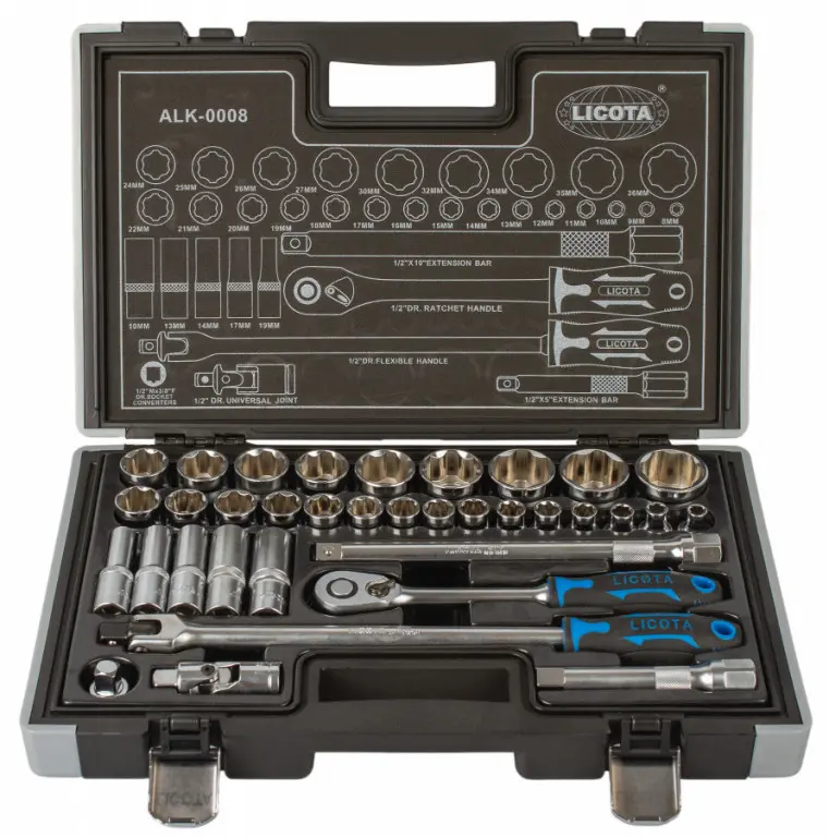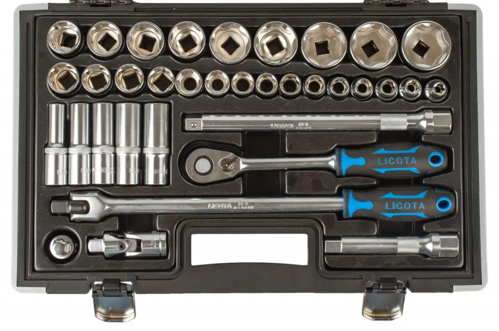 Táto profesionálna gola sada náradia značky LICOTA obsahuje 35 kusov vysoko kvalitných nástrčných kľúčov a ďalšieho príslušenstva, uložených v odolnom plastovom kufri.
