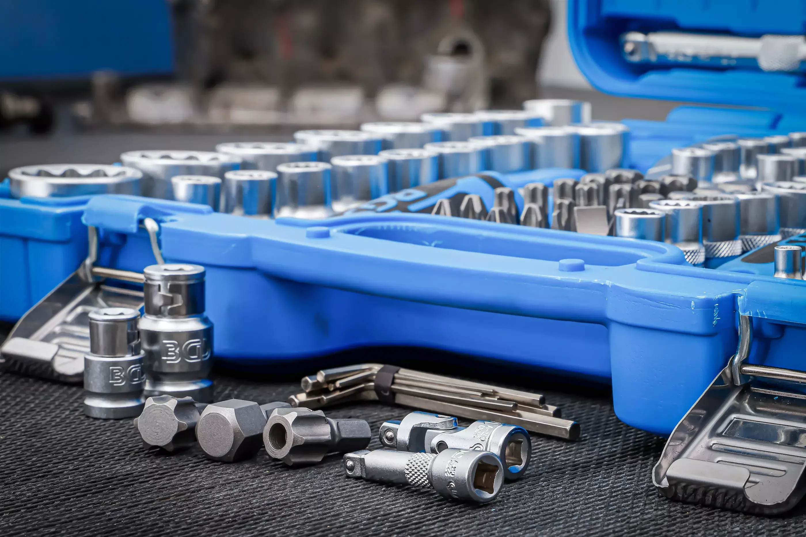 Kvalitná gola sada 1/4", 3/8", 1/2" obsahuje ráčne, dvanásťhranné nástrčné kľúče, bity a ďalšie.