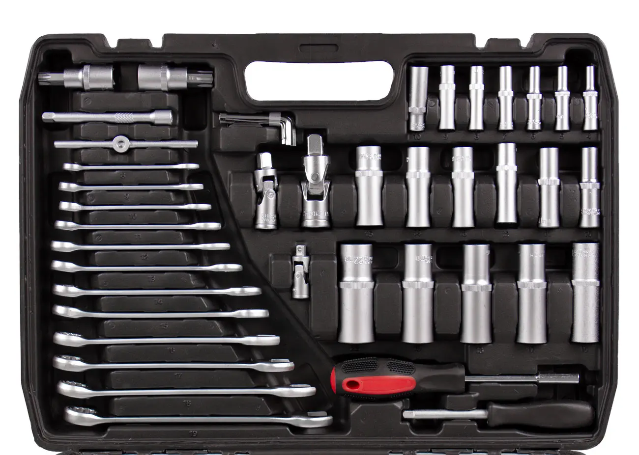 Obsiahla sada náradia v kufri, 1/4", 3/8" a 1/2" goly v plastovom kufri. Vhodná do každej HOBBY d...