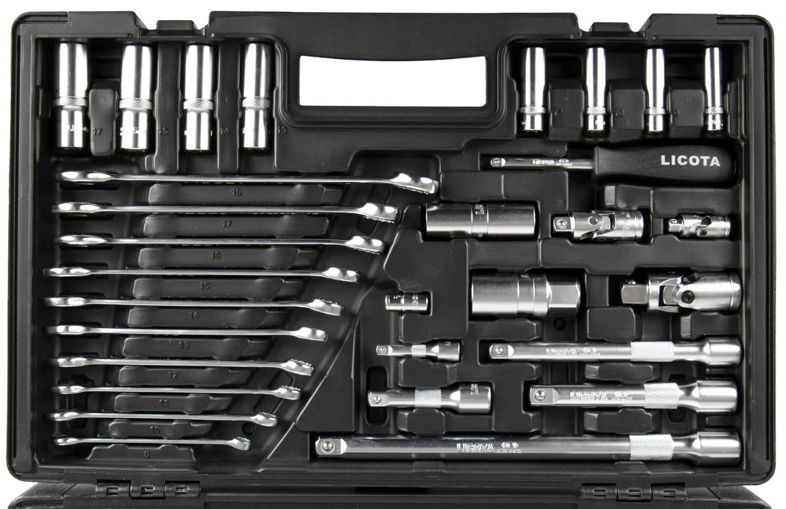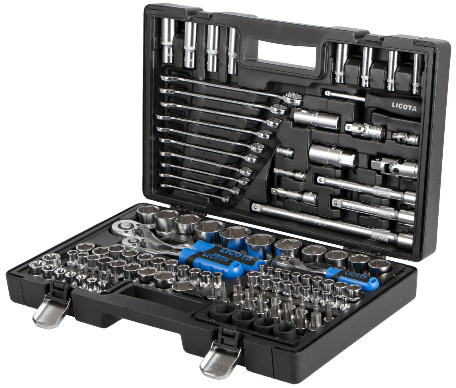 Profesionálna gola sada 120 ks od značky LICOTA obsahuje nástrčné kľúče so štvorhranom 1/4", 3/8" i 1/2" a to v metrických aj palcových rozmeroch.