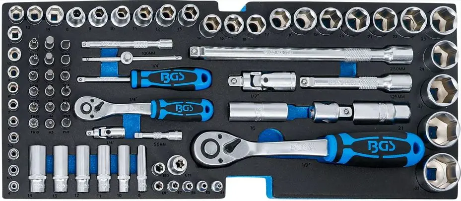 | 16 ks | Nástrčné hlavice 1/2" (šesťhran): 8, 9, 10, 11, 12, 13, 14, 15, 16, 17, 18, 19, 20, 21, 22, 24 mm |