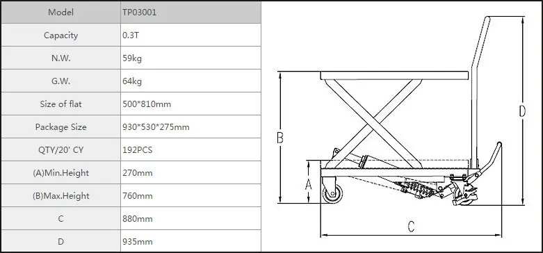 Hydraulický zdvíhací stôl 270 kg nožnicový - TP03001