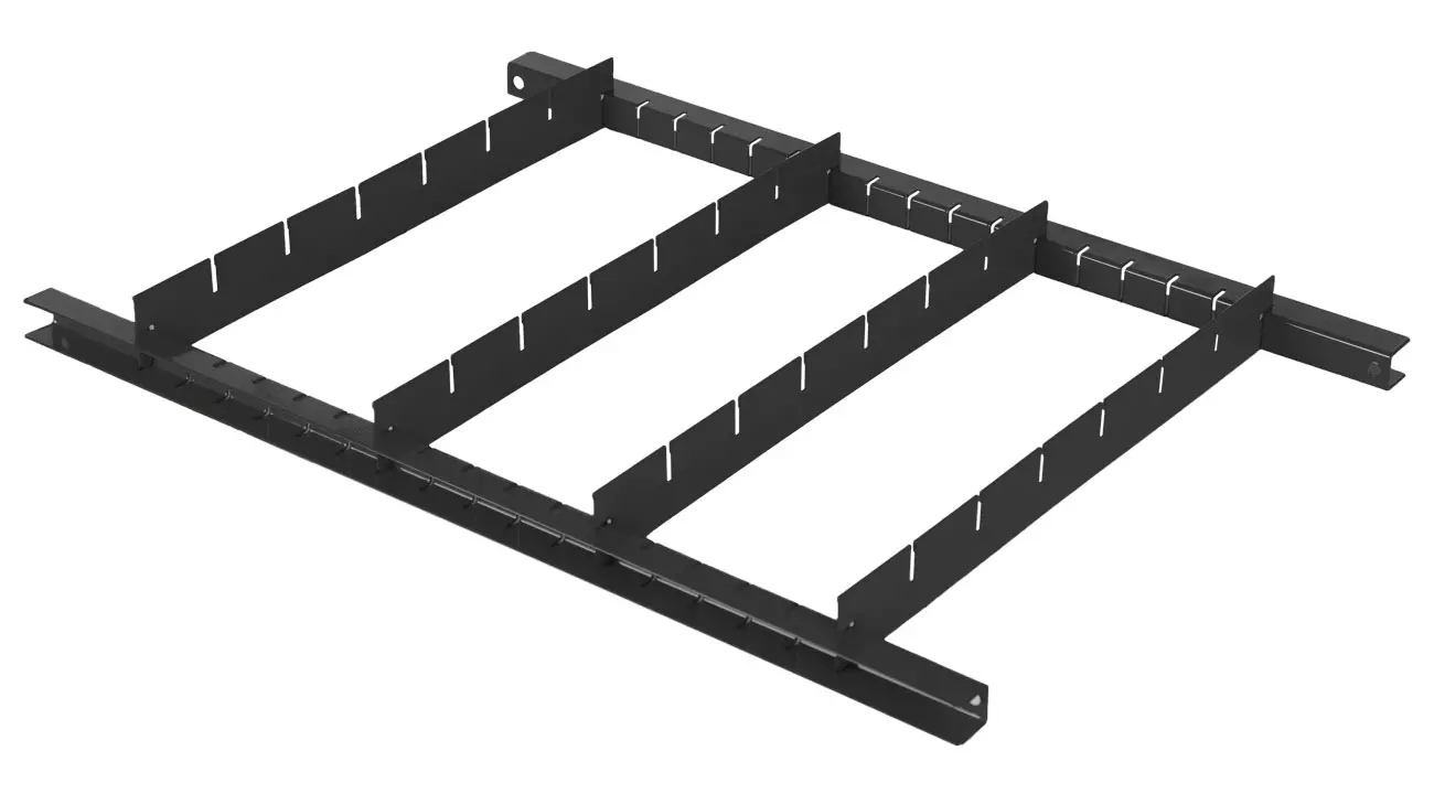 Rozdeľovač sa skladá z 2 ks líšt a 4 ks prepážok, ktoré je možné ľubovoľne umiestniť v dvoch smeroch podľa potreby.
