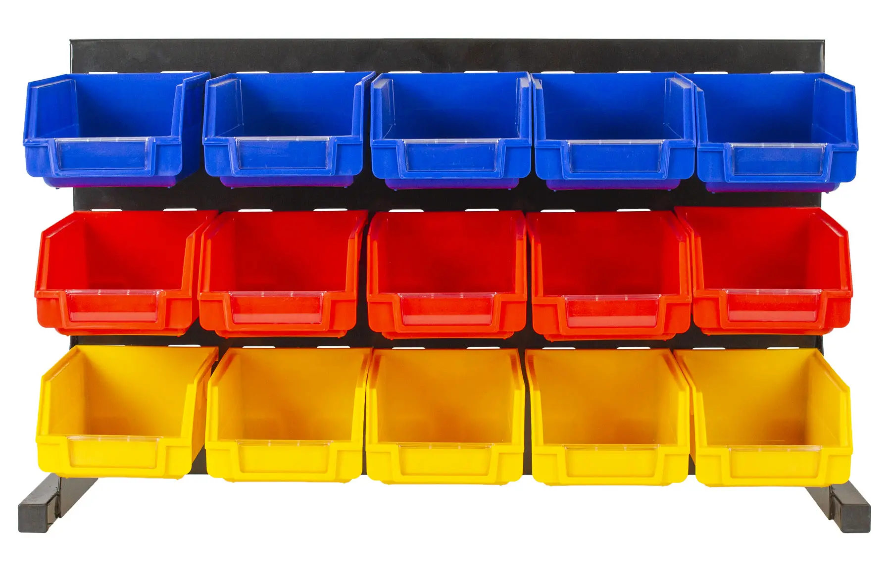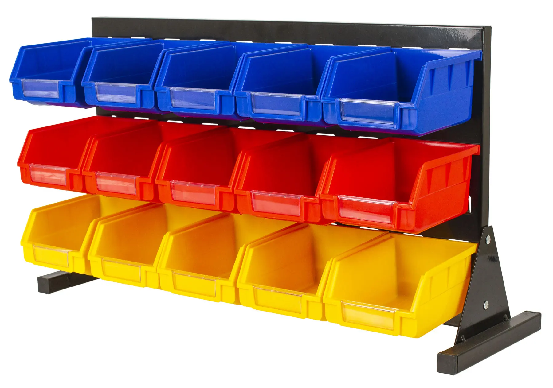 Kovový rám organizéru s 15 plastovými boxami pre dokonalú organizáciu. Rozmery: 530 x 254 x 330 mm (Š x H x V).