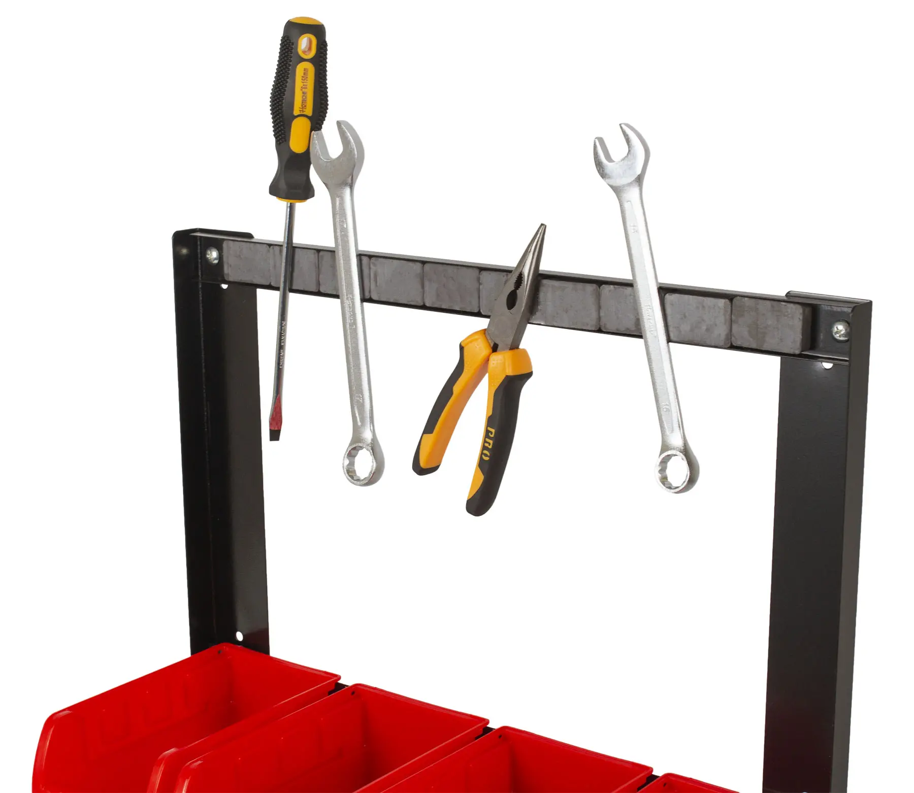 Kovový rám so zásobníkmi a magnetickou lištou pre dokonalú organizáciu v dielni. Rozmery: 457 x 2...