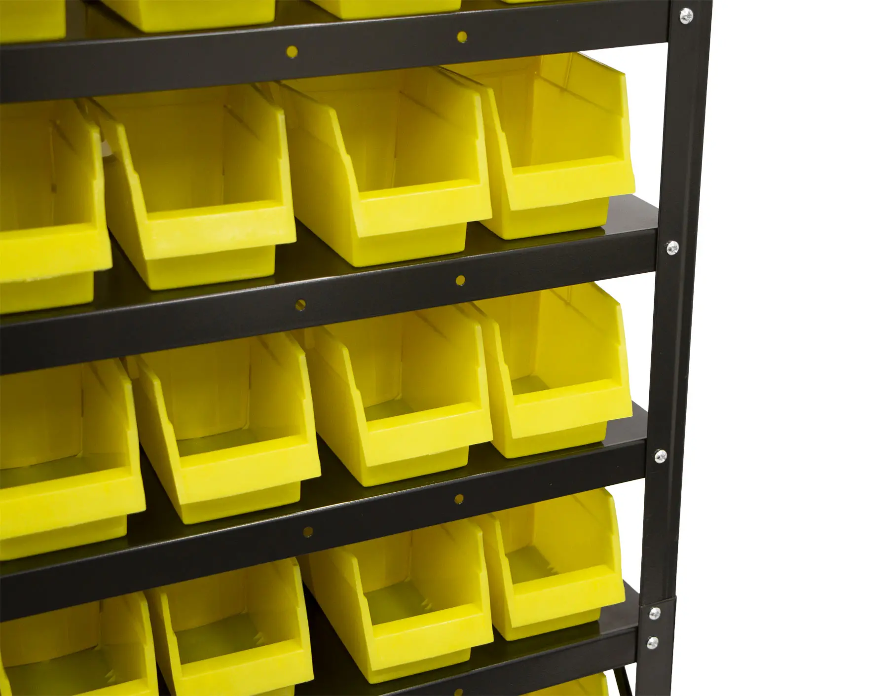 60 plastových boxov, kovová konštrukcia, rozmery 765 x 305 x 1660 mm.