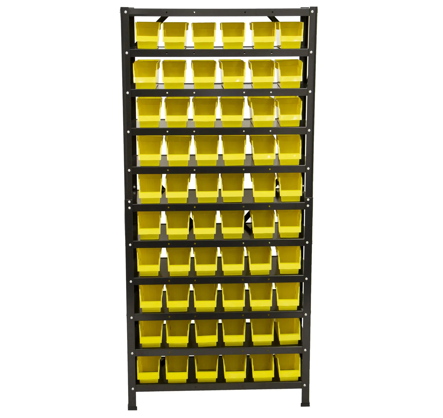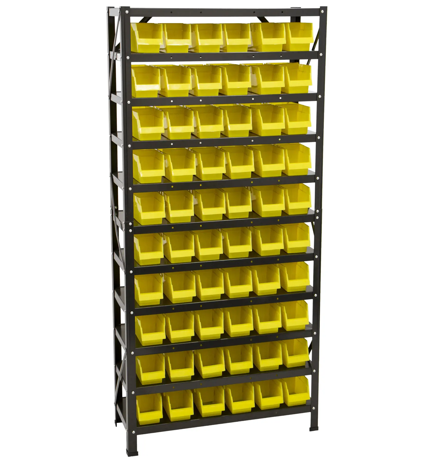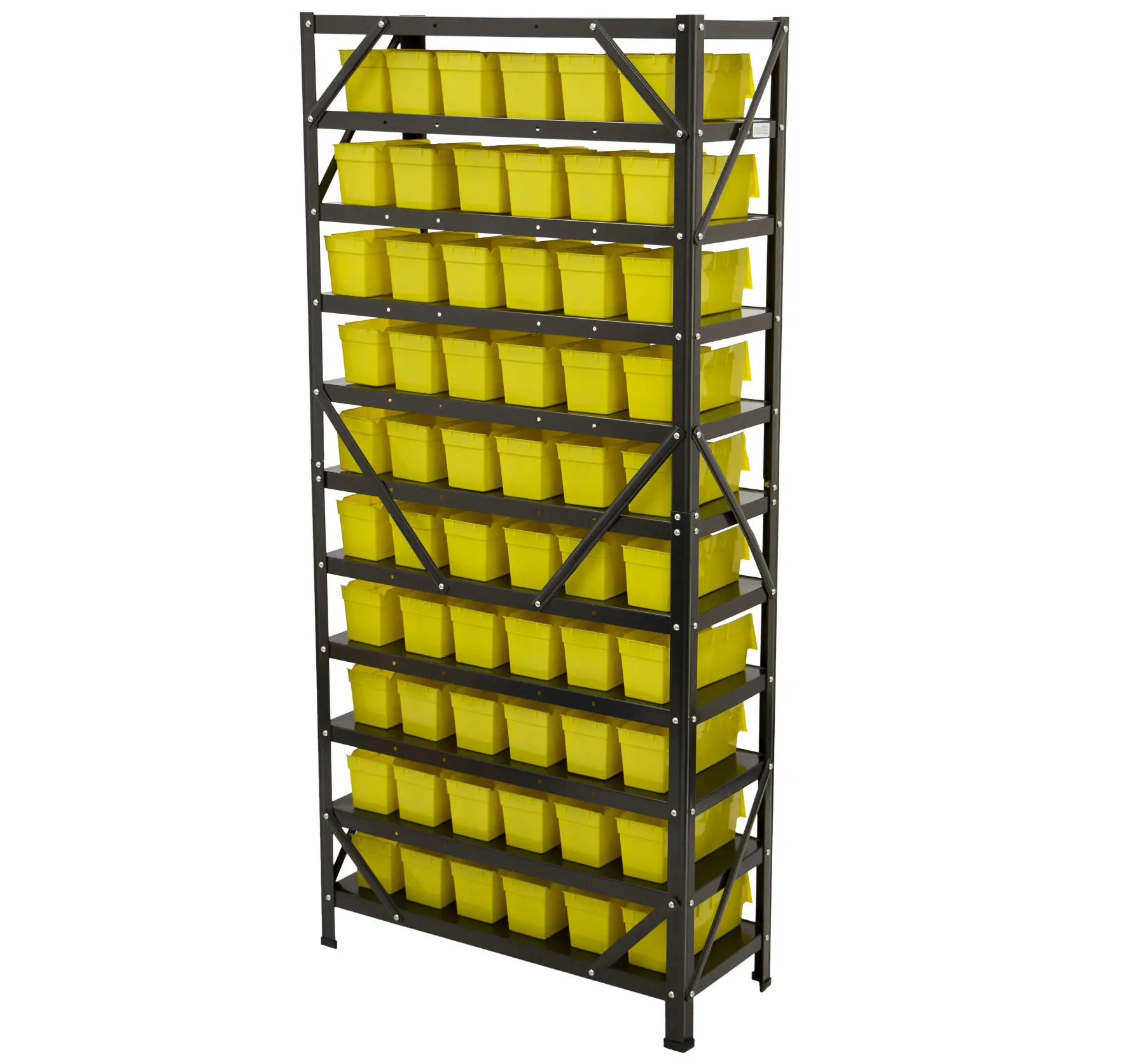 Regál so 60 plastovými boxmi sa bude hodiť každému, kto chce mať prehľad a poriadok v drobnom materiálu.