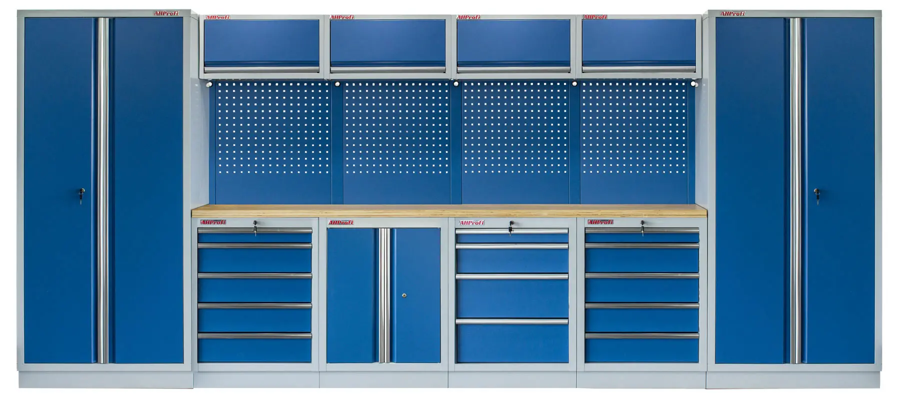 Zostava nábytku v sebe skrýva dostatočné množstvo úložného priestoru pre vaše náradie, autotechniku aj dielenské vybavenie. V kombinácii s robustnou pracovnou doskou získate multifunkčnú stenu, s ktorou vám práca pôjde od ruky vo všetkých smeroch.