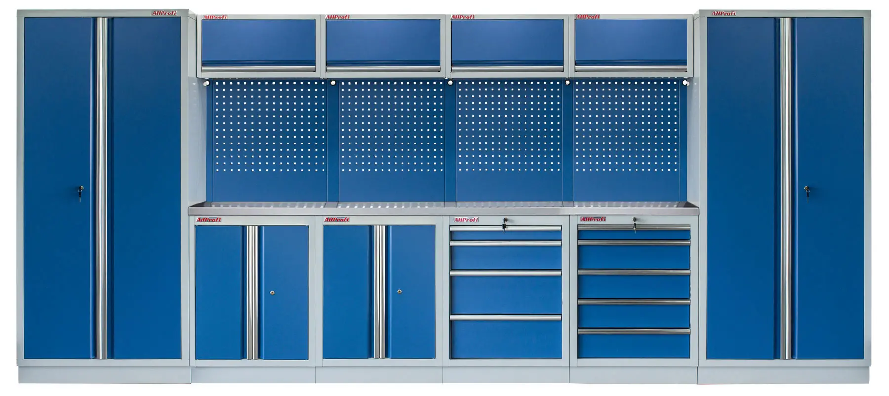 Spodné a vysoké skrinky sú uzamykateľné. Či už plánujete zostavu do domácnosti alebo do práce, vaše náradie bude v bezpečí pred nezvanými hosťami.