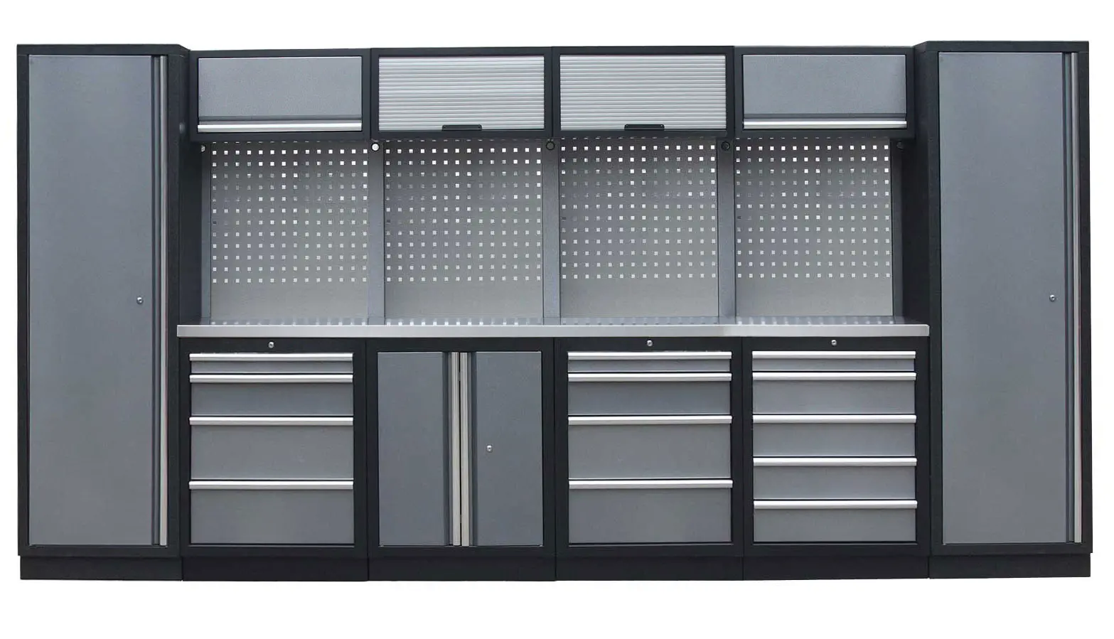 Zostava nábytku v sebe skrýva dostatočné množstvo úložného priestoru pre vaše náradie, autotechniku aj dielenské vybavenie. V kombinácii s robustnou pracovnou doskou získate multifunkčnú stenu, s ktorou vám pôjde práca od ruky vo všetkých smeroch.
