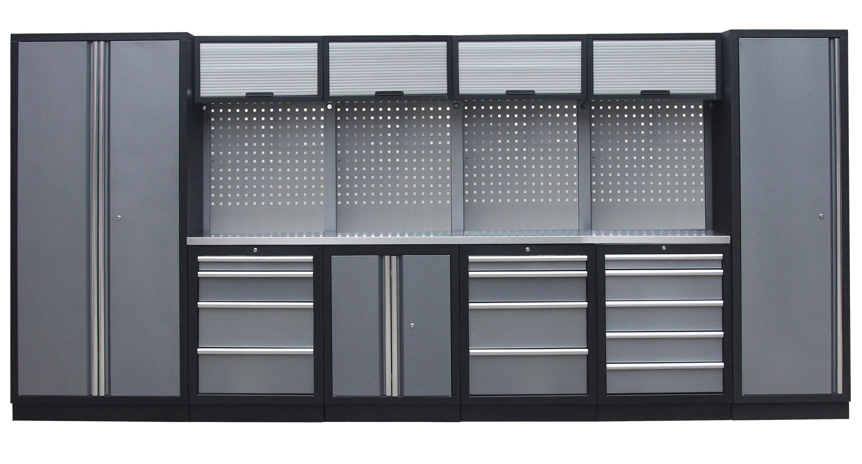 Zostava 21 ks dielenského nábytku PROFI GREY s nerezovou pracovnou doskou
