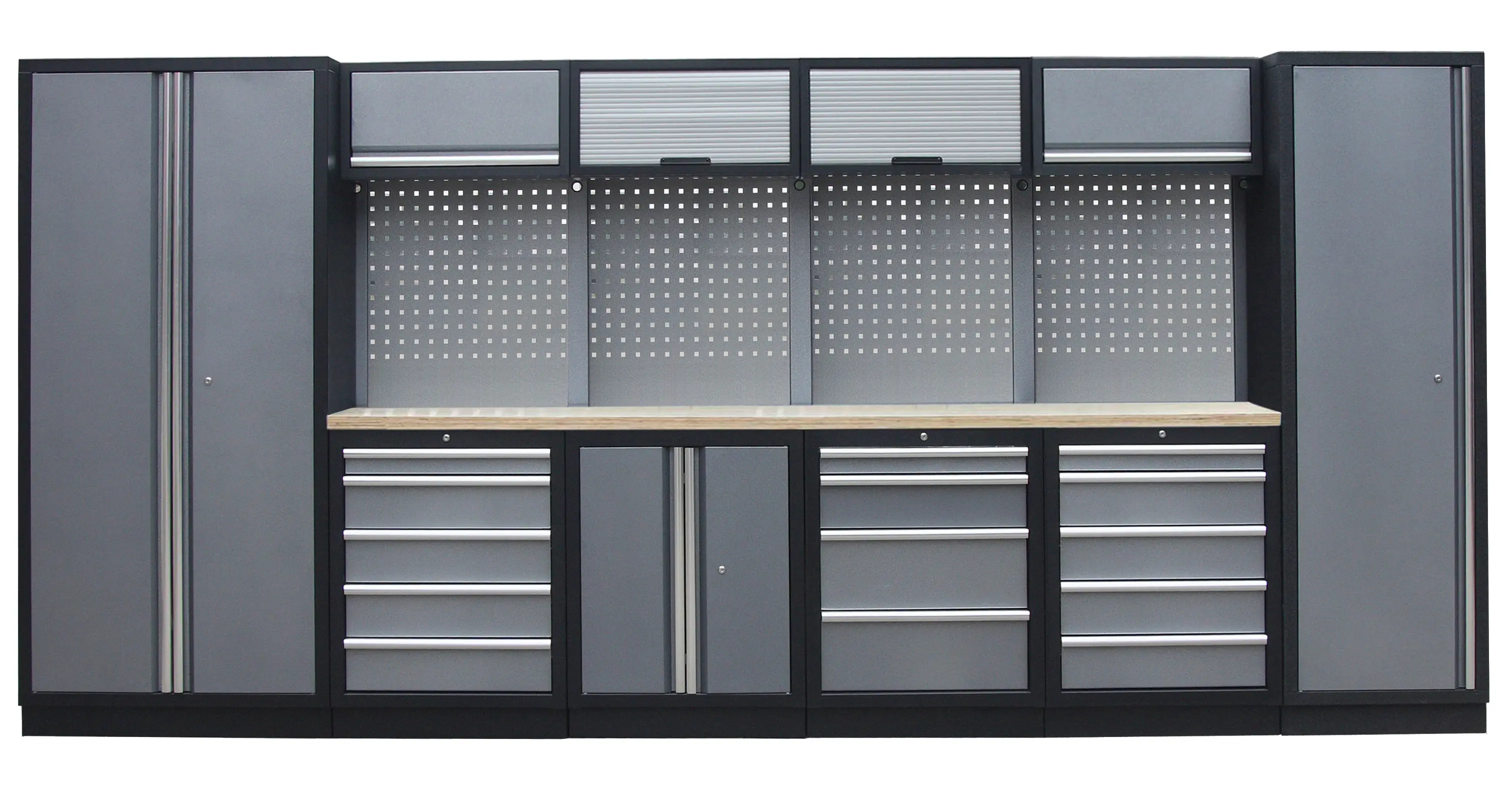 Zostava 21 ks dielenského nábytku PROFI GREY s drevenou pracovnou doskou
