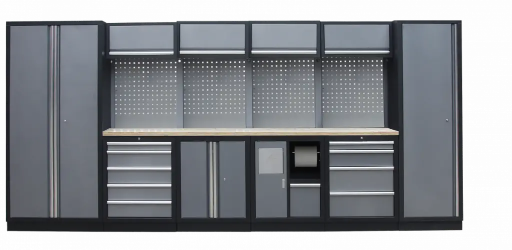 Zostava 21 ks dielenského nábytku PROFI GREY s drevenou pracovnou doskou