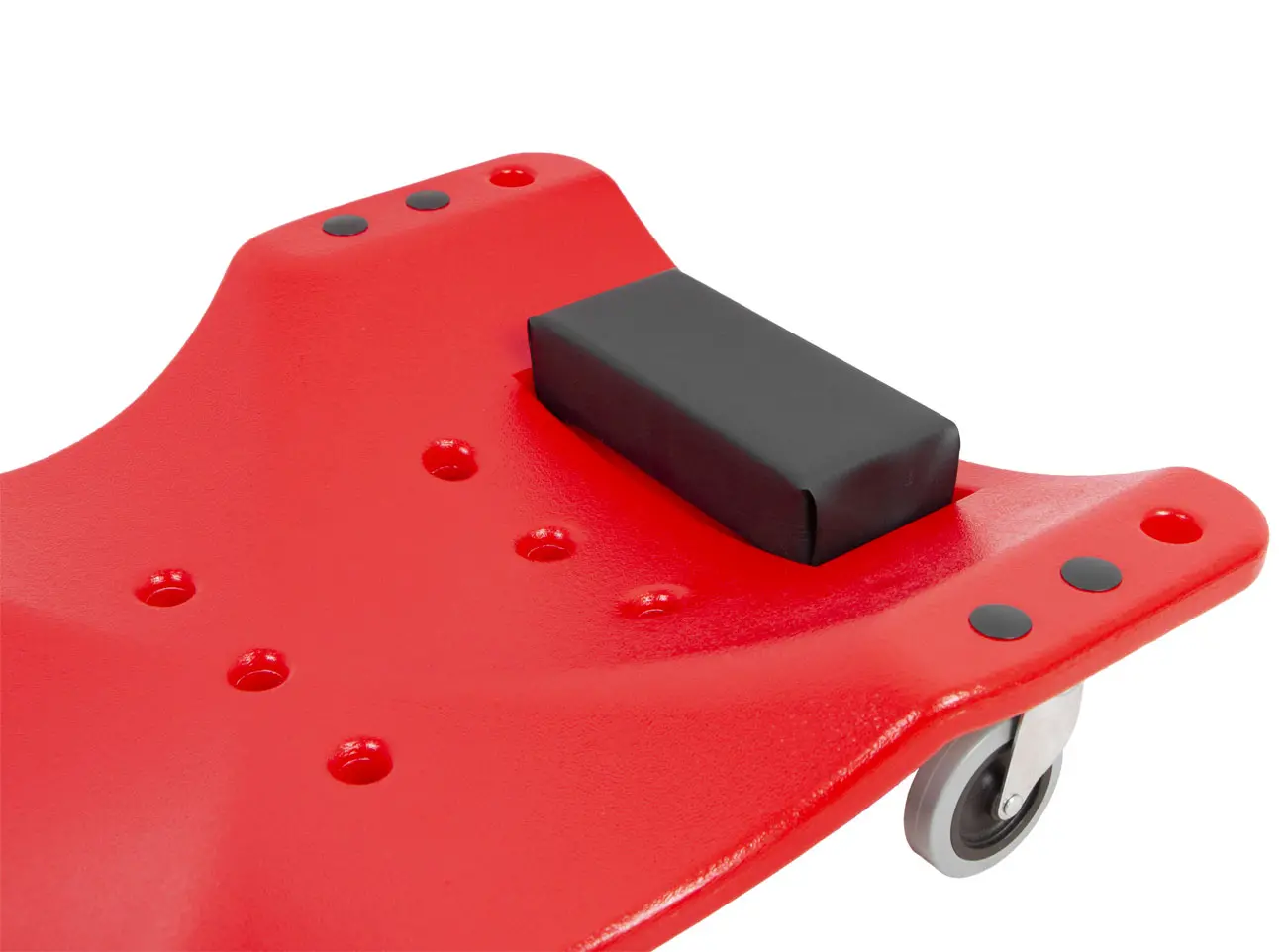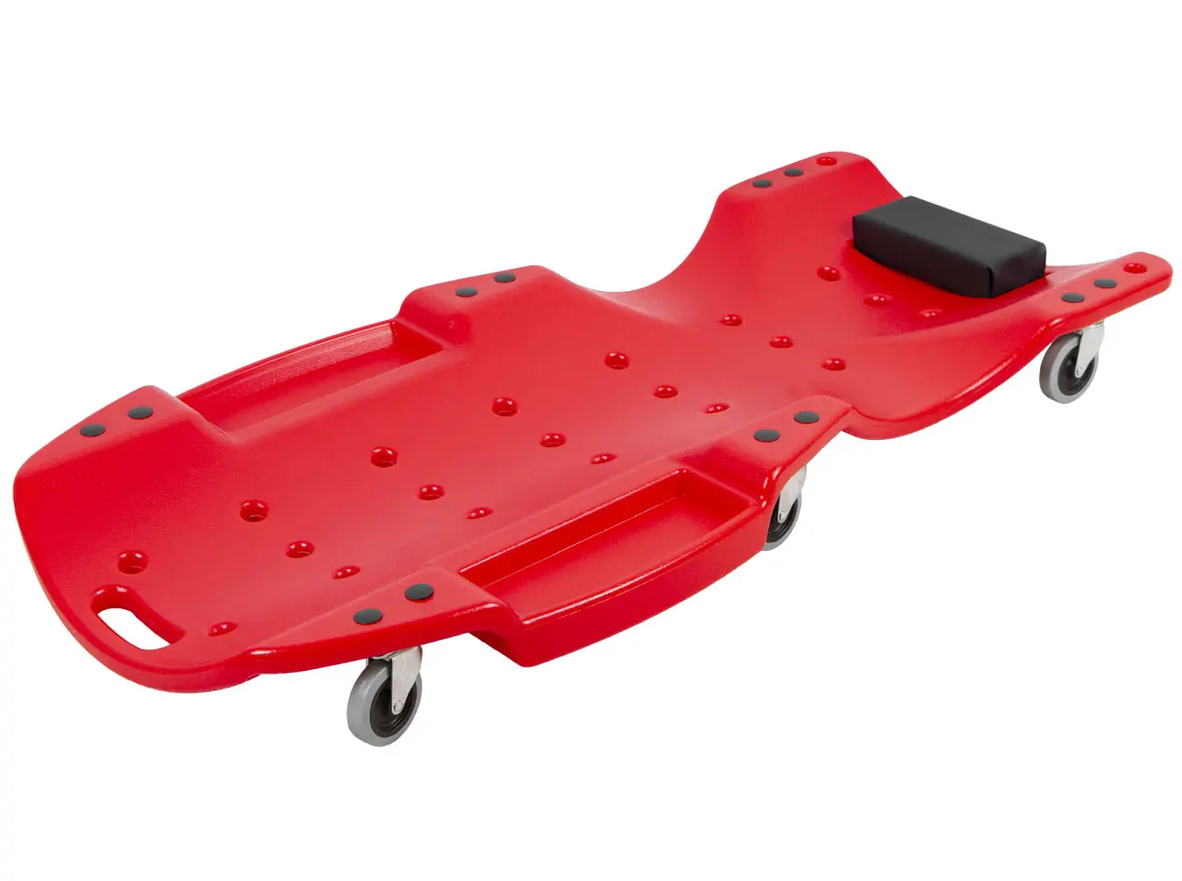 Plastová konštrukcia zaišťuje dostatočnú pevnosť a nosnosť až 150 kg. Ležadlo je vybavené dvojicou odkládacích priestorov na skrutky a drobné ručne náradie, ktoré tiež budete mať počas práce stále u seba. Ergonomicky tvarovaná konštrukcia vo spojení s podhlavníkom zaistí pohodlné vykonávanie servisných prác.