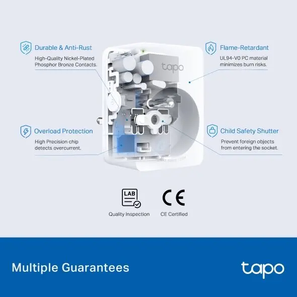 Chytrá zásuvka TP-Link Tapo P110M spolupracuje s aplikáciou Tapo, ktorú si stiahnete do svojho smartfónu. Umožní vám jednoduchú správu pripojených zariadení, nech ste kdekoľvek - doma, v práci, na prechádzke alebo napríklad na dovolenke. Tapo P110M má kompaktné rozmery, aby ste mali k susedným zásuvkám pohodlný prístup. Vďaka ohňovzdorným materiálom spĺňa normu UL94-V0 a minimalizuje riziko popálenia.