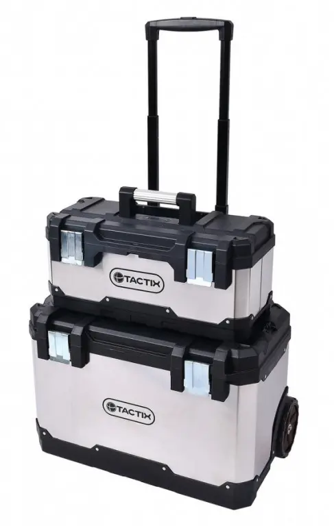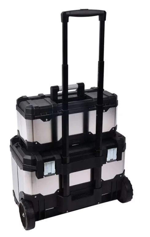 Zostava sa skladá z dvoch kufrov. Spodný väčší kufor má kolieska a teleskopickú rukoväť (až do výšky 100 cm). Horný menší kufor má 1 madlo pre jednoduché prenášanie. Oba kufre majú vnútri prepravku na drobnejšie náradie (napr.: kliešteskrutkovačekľúče, atď.).