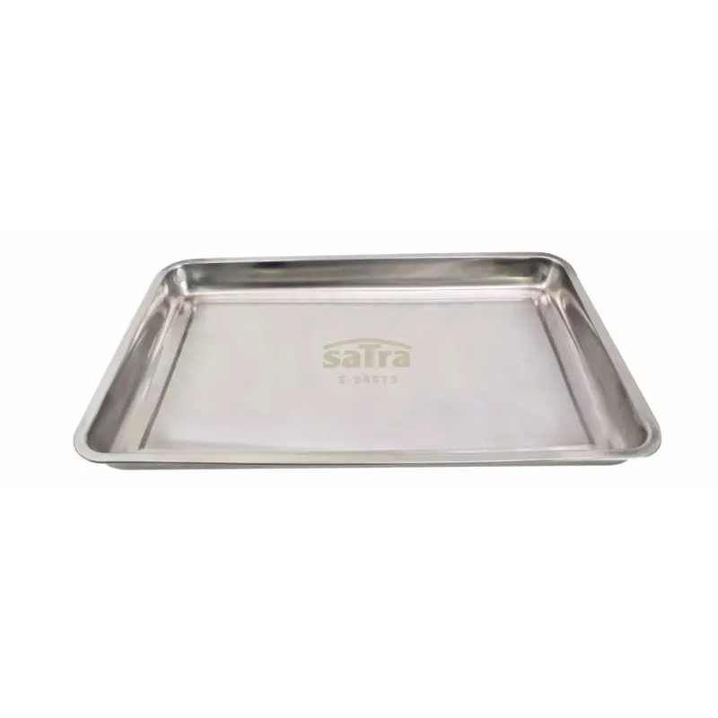 Nerezová nádoba na vypústenie oleja o objemu 11 l a o rozmeroch 600 x 400 x 50 mm.