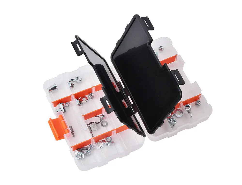 Vodotesný plastový organizér na drobný materiál, ako sú napríklad skrutky alebo matice.