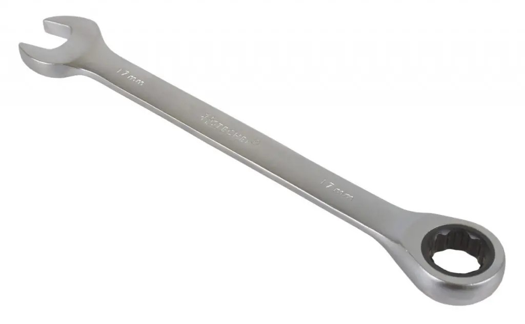 Očkoplochý račňový kľúč o velľkosti 17 mm a celkovou dĺžkou 220 mm, 72 zubov.