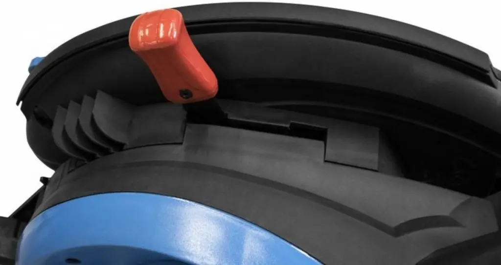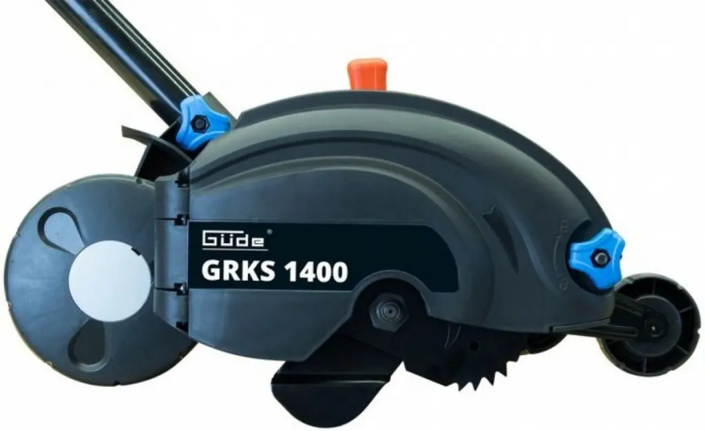 Konštrukcia: rezný nôž (d x š: 190 x 80 mm, s dvoma britmi; vrátane ochranného vodiaceho prvku), výškovo nastaviteľné pomocné držadlo, ergonomicky tvarovaná tlačná rukoväť.