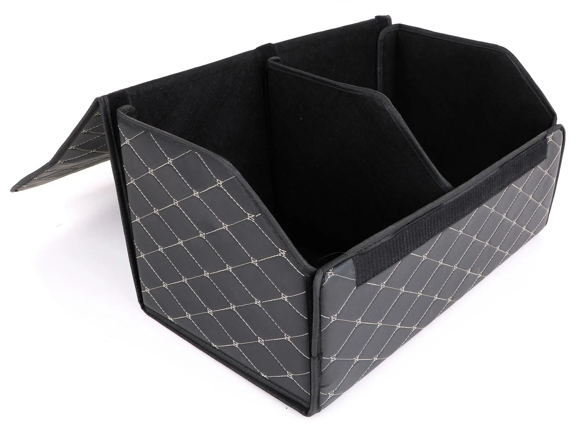 Ak organizér práve nepotrebujete, rozložíte ho a ľahko uskladníte. Ušetríte tým priestor v aute. Vďaka koženému dizajnu so vzorovým šitím vyzerá organizér luxusne. Kvalitný povrch z umelej kože kedykoľvek ľahko umyjete. Navyše je pevný a odolný.
