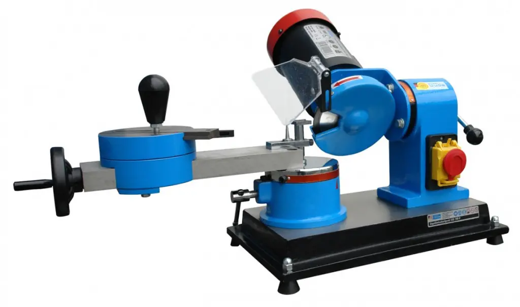 • brúsenie čiel aj chrbtov pílových zubov pomocou polohovateľného brúsneho kotúča (± 30 °) a oporného stolíka (+ 30 / - 80 °)