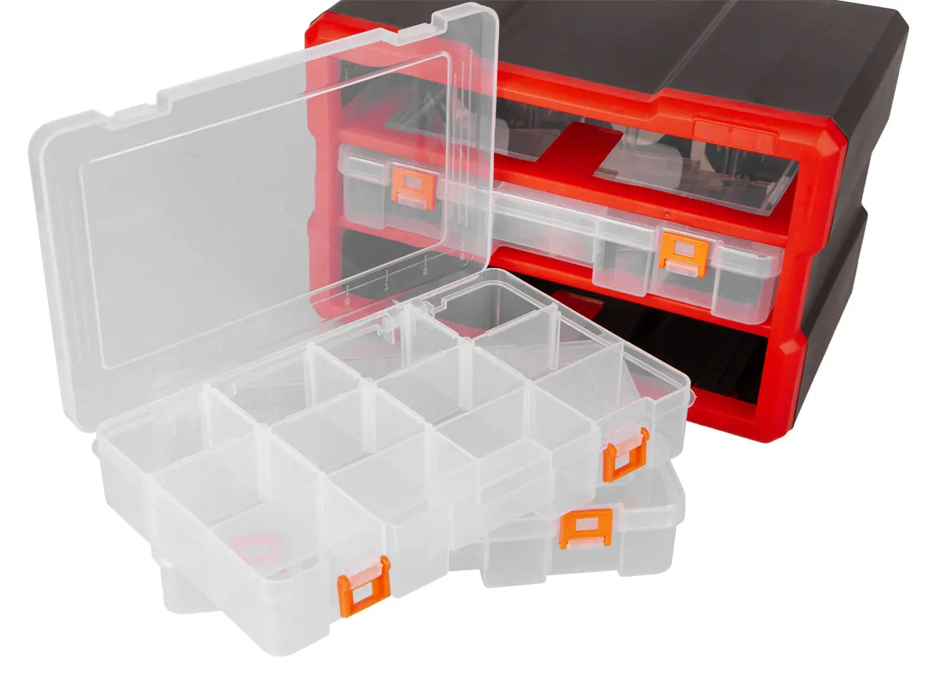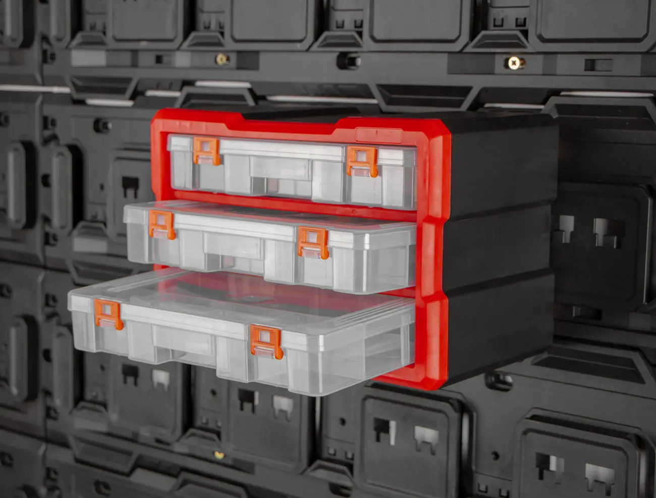 • Prehľadnosť: Transparentný dizajn zásuviek umožňuje rýchle zistenie obsahu bez nutnosti ich otvorenia.