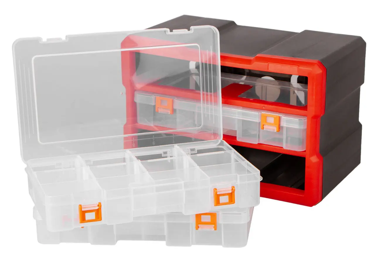 Organizér je vyrobený z vysoko odolného plastu, čo zaručuje jeho dlhú životnosť a odolnosť voči opotrebovaniu. Rozmer 295 x 195 x 160 mm.